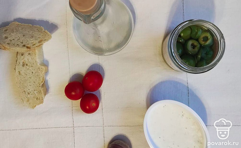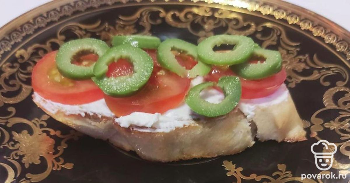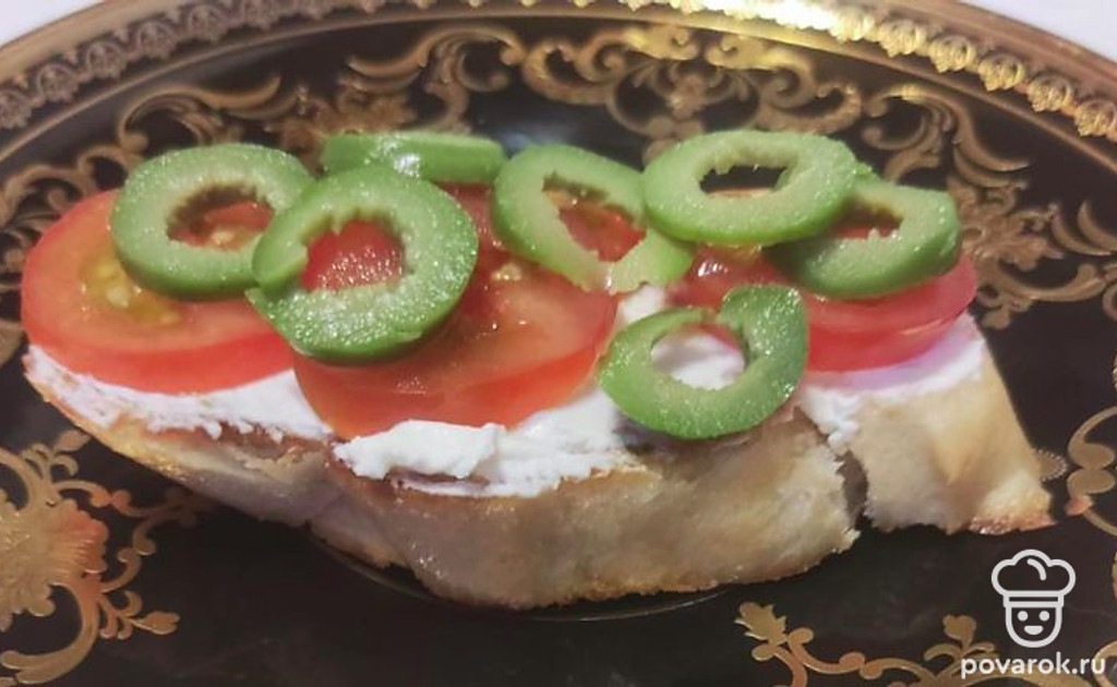 Брускетта с помидорами и оливками