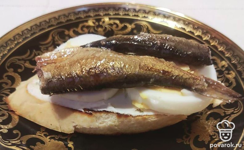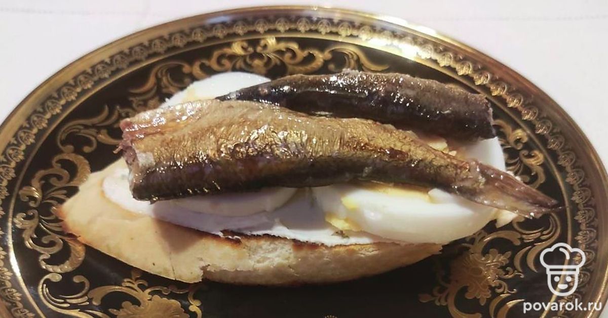 Нежнейшая брускетта со шпротами и отварным яйцом.