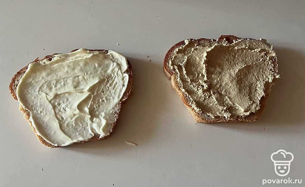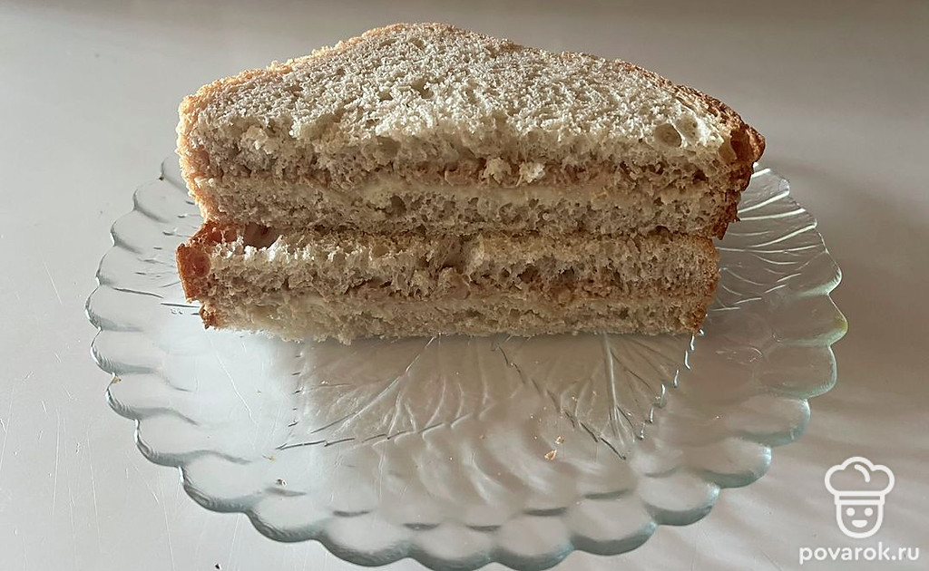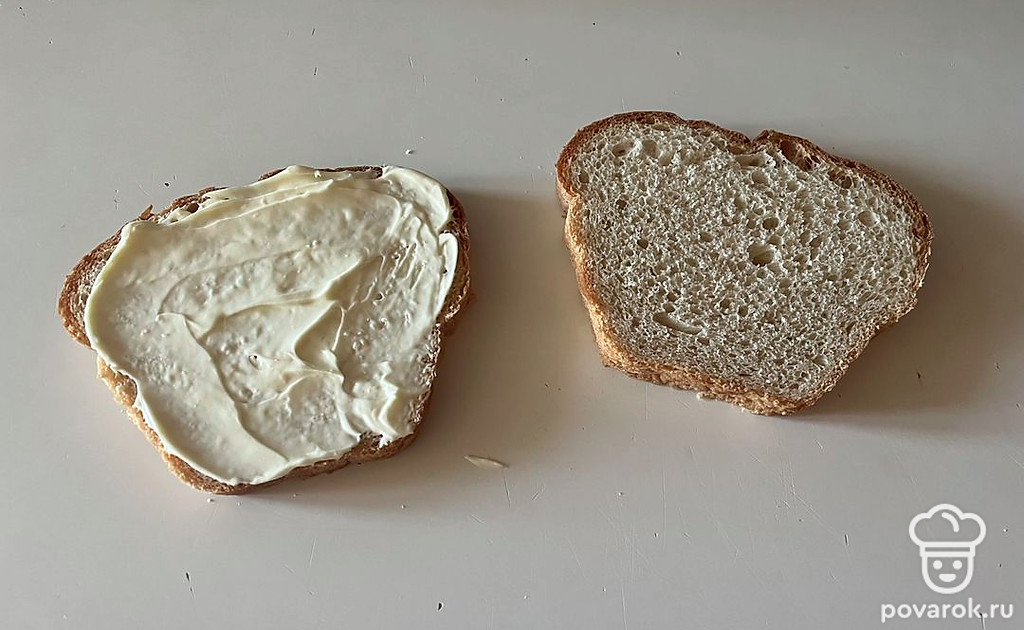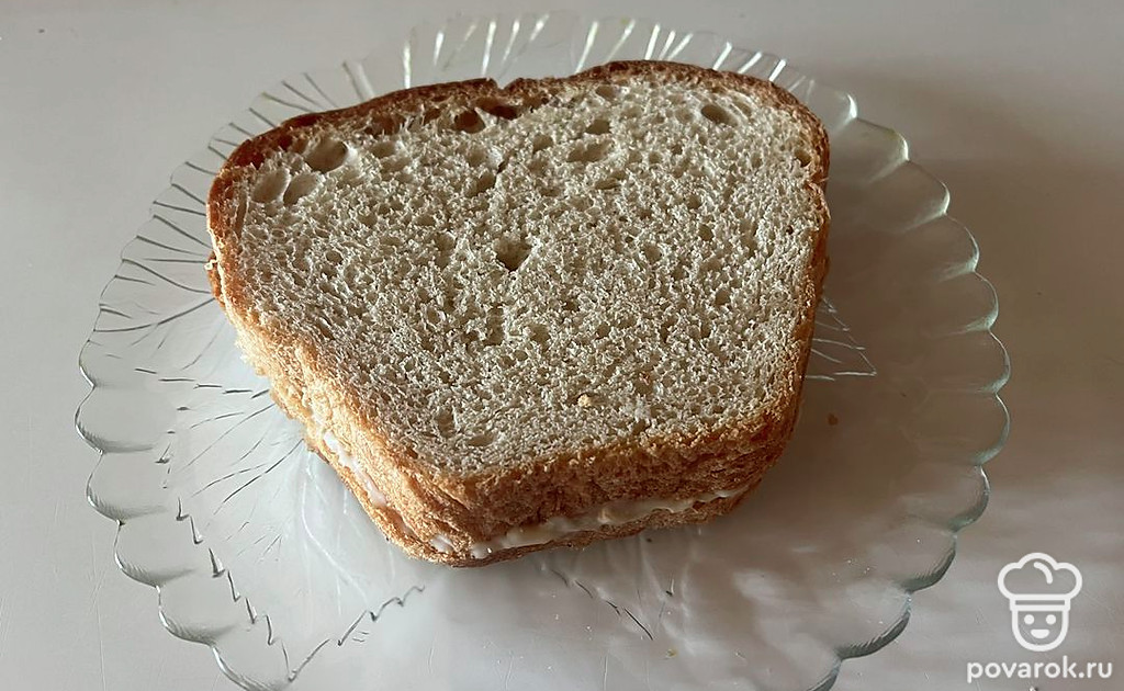 Накройте один ломтик вторым, чтобы получился сендвич.