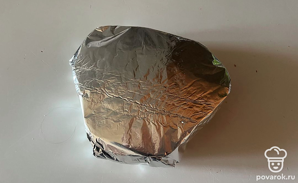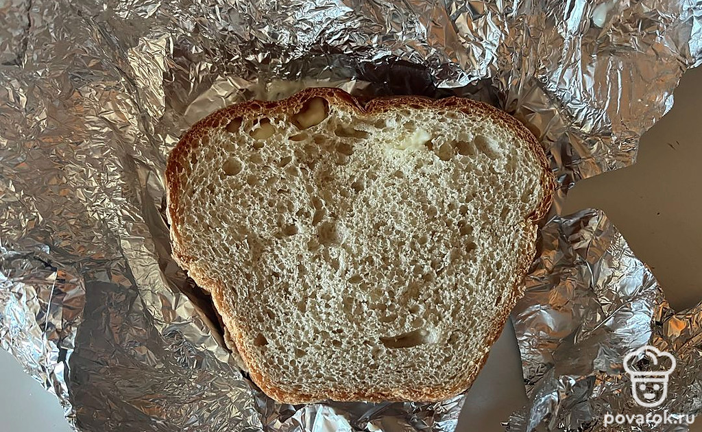 Заранее разогрейте утюг на максимум. Горячим утюгом прижмите тост в фольге сначала с одной стороны на 4 минуты. Затем переверните тост и также прожарьте его еще в течении 4 минут.