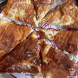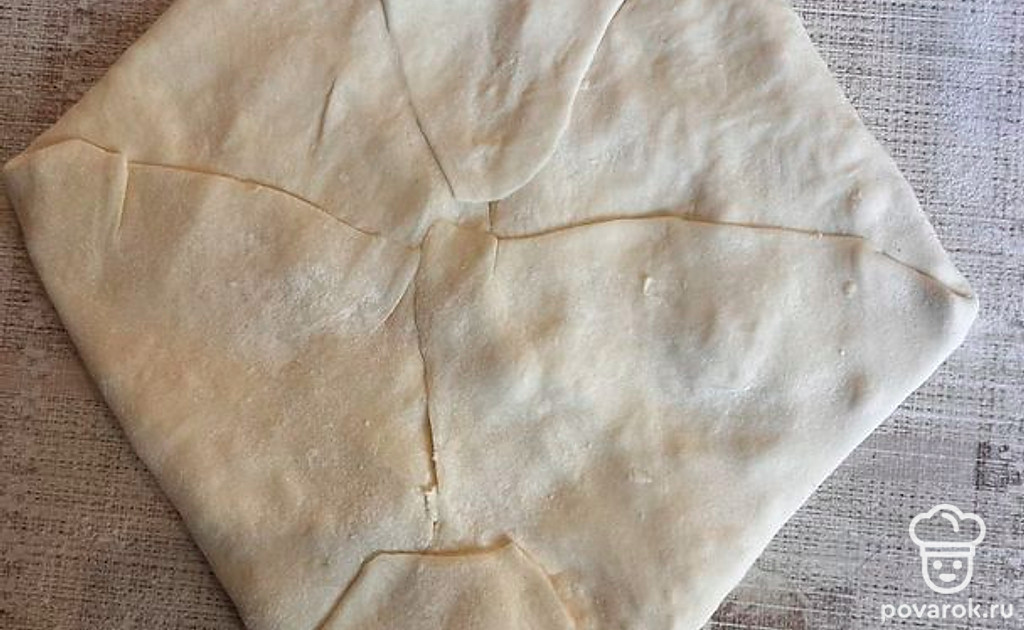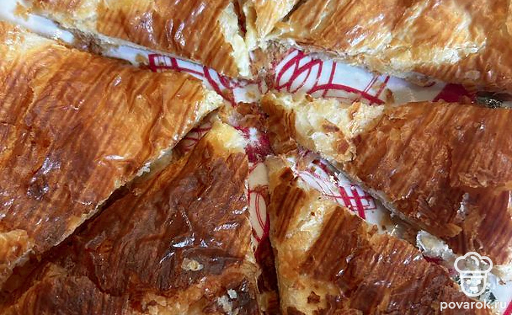 Достать готовое хачапури, дать остыть и разрезать на 6-7 частей.