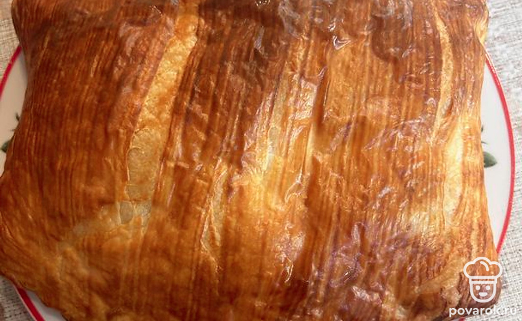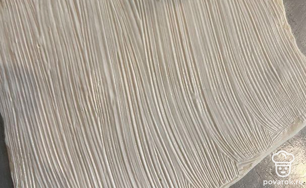 Переложить тесто в противень, смазать сметаной, отправить в духовку на 20-25 минут.
