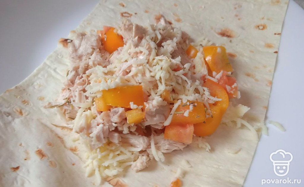 Разложите полученную смесь на полоску лаваша.
