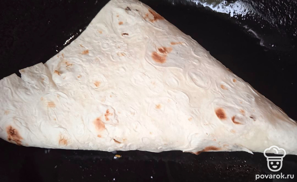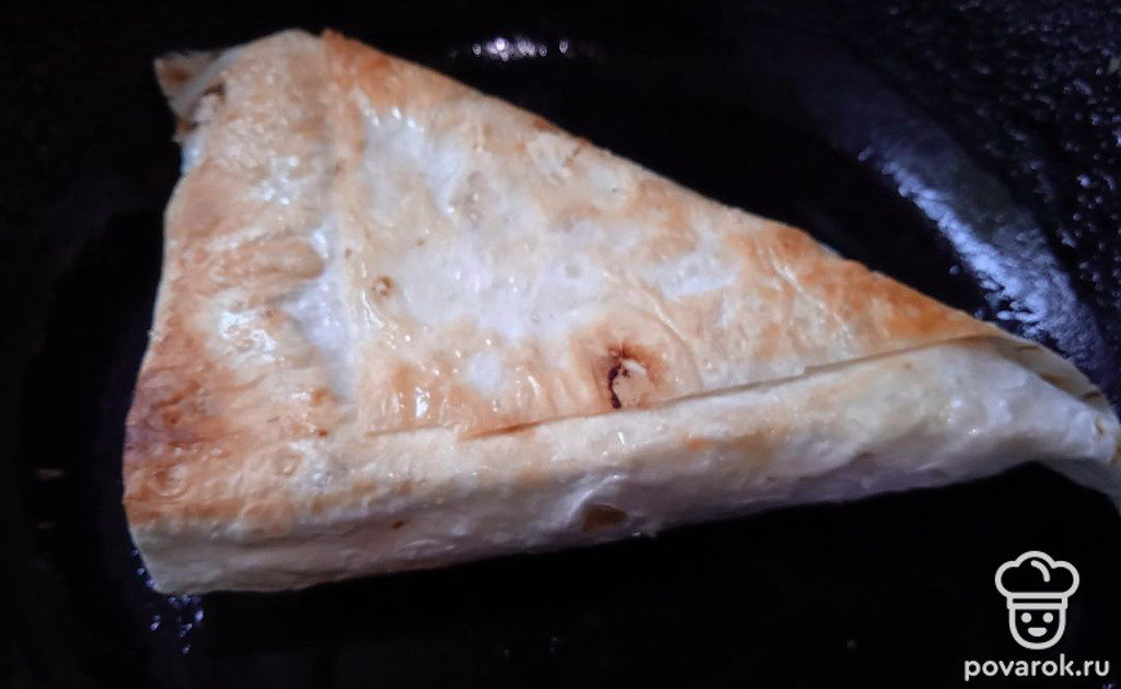 Положите треугольник на раскаленную сковороду, смазанную растительным маслом.