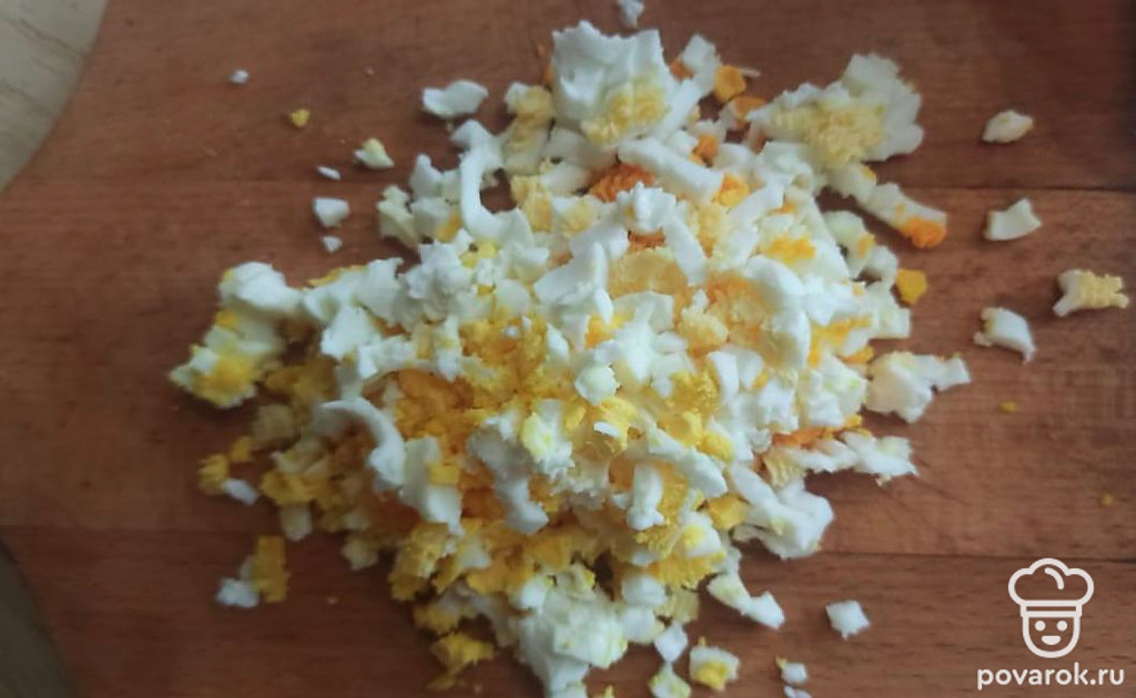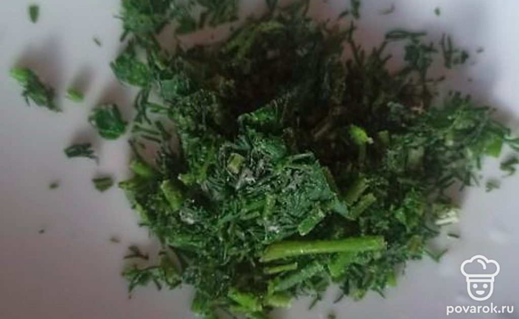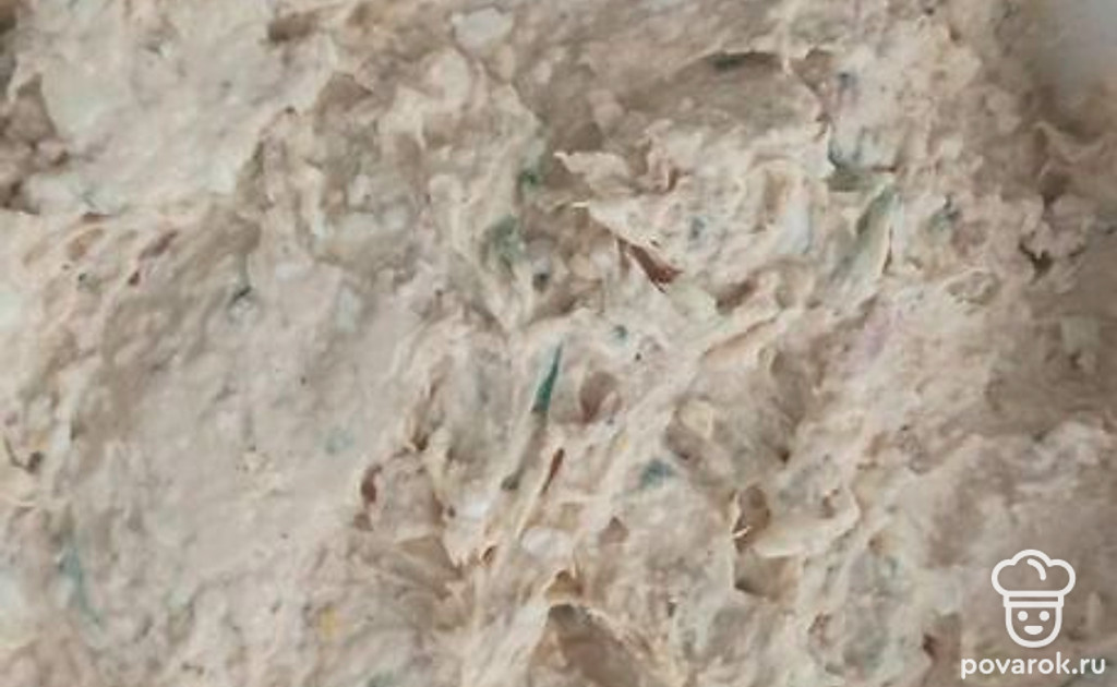 Смешать яйца, зелень, чеснок, творожный сыр и тунец.