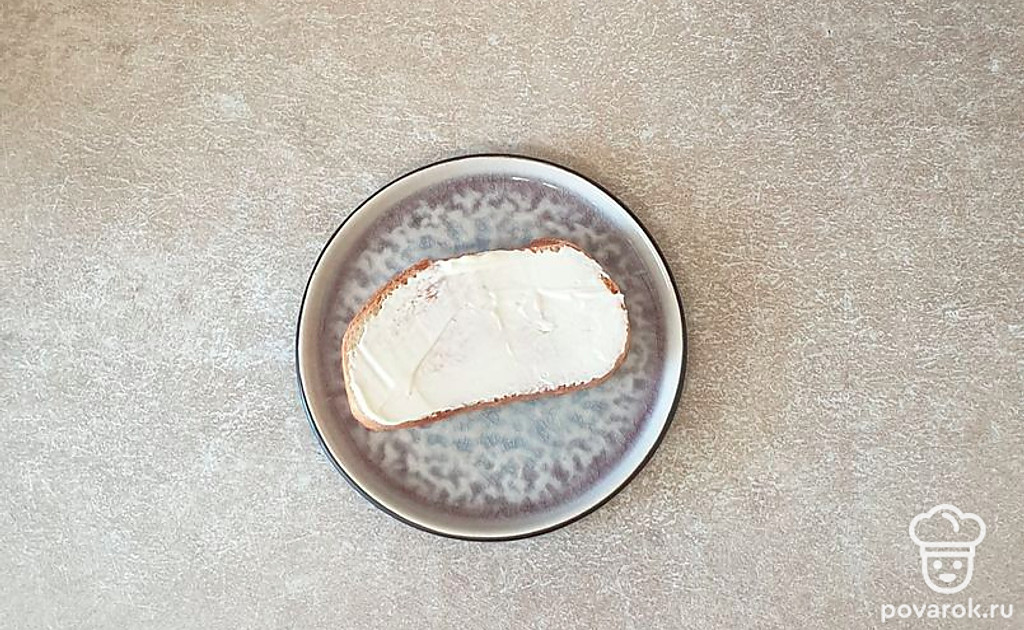 Готовый хлеб смажьте тонким слоем майонеза.