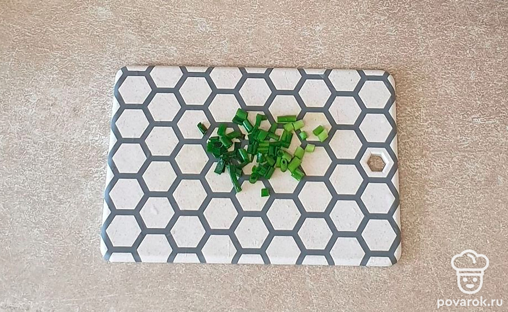 Зеленый лук промойте в холодной воде и мелко нарежьте. Посыпьте сверху брускетту.