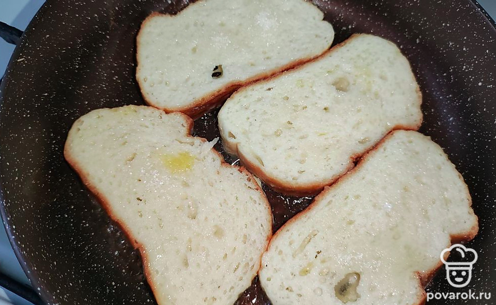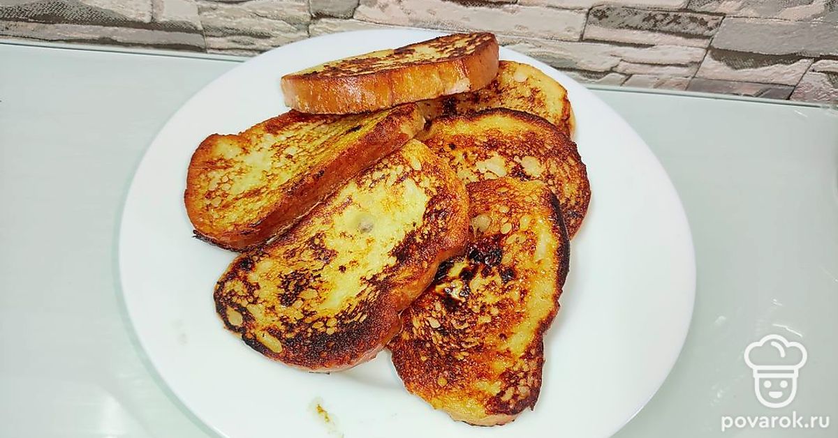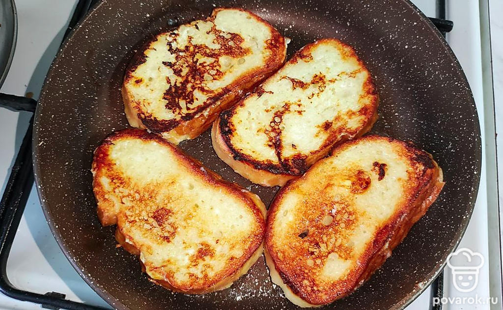 Приготовим вкусные гренки на завтрак с карамелизированным сахаром.