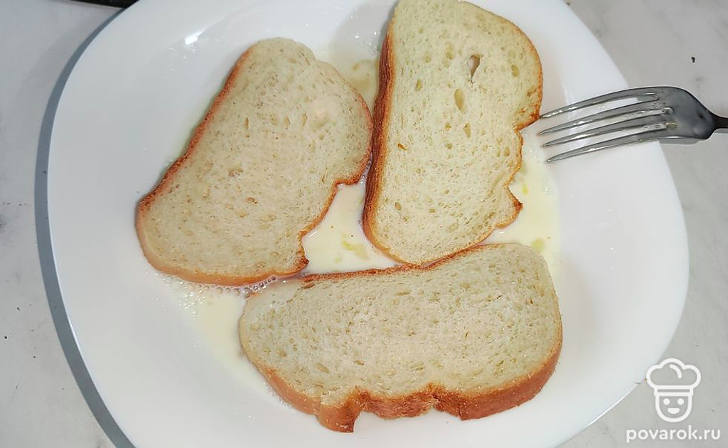 Обмакните каждый кусочек в молочно-яичную смесь.