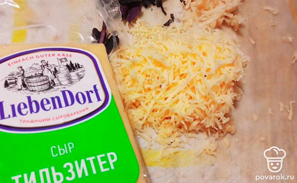 Чеснок и сыр натираем на мелкой терке. Базилик мелко нарезаем и перемешиваем.