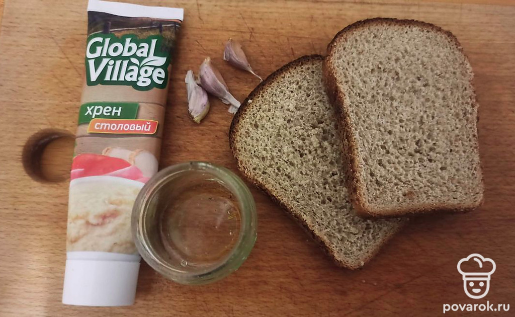 Сухари с хреном и чесноком
