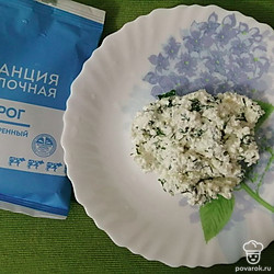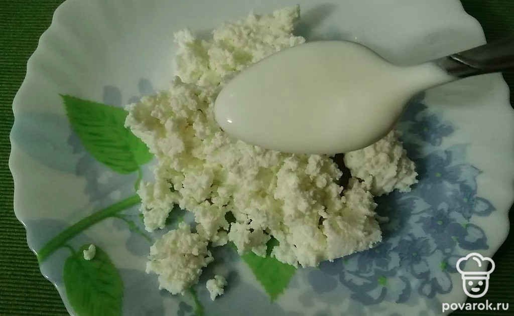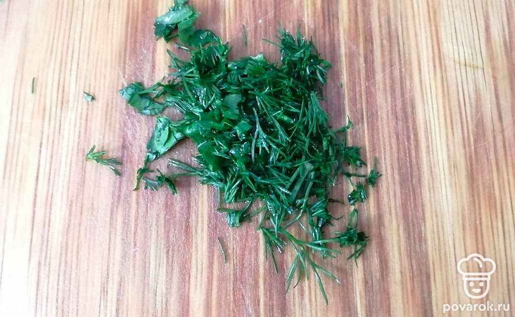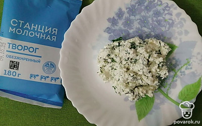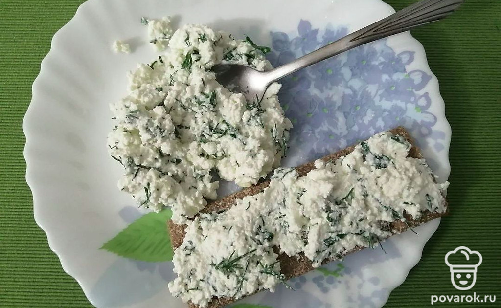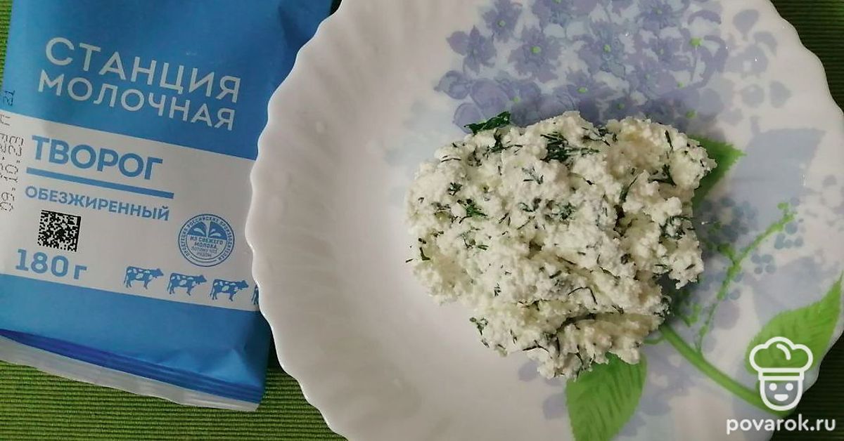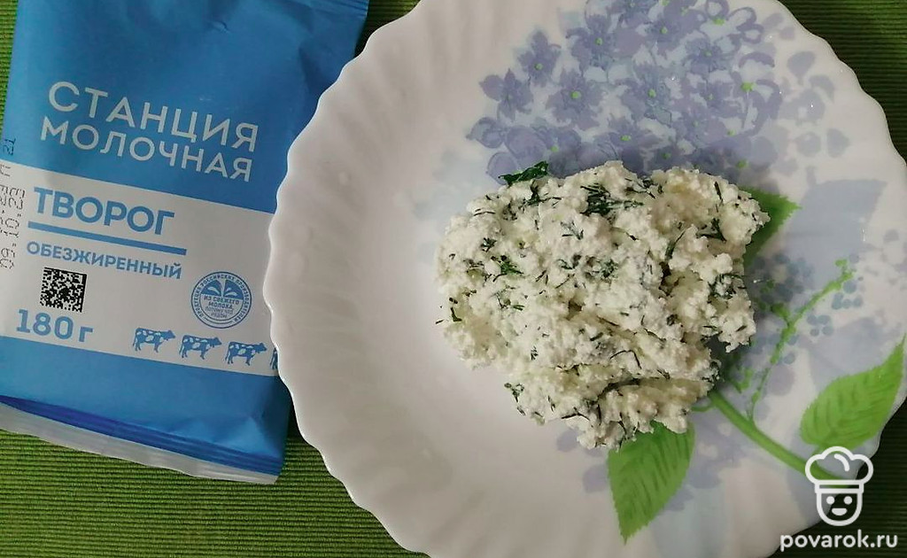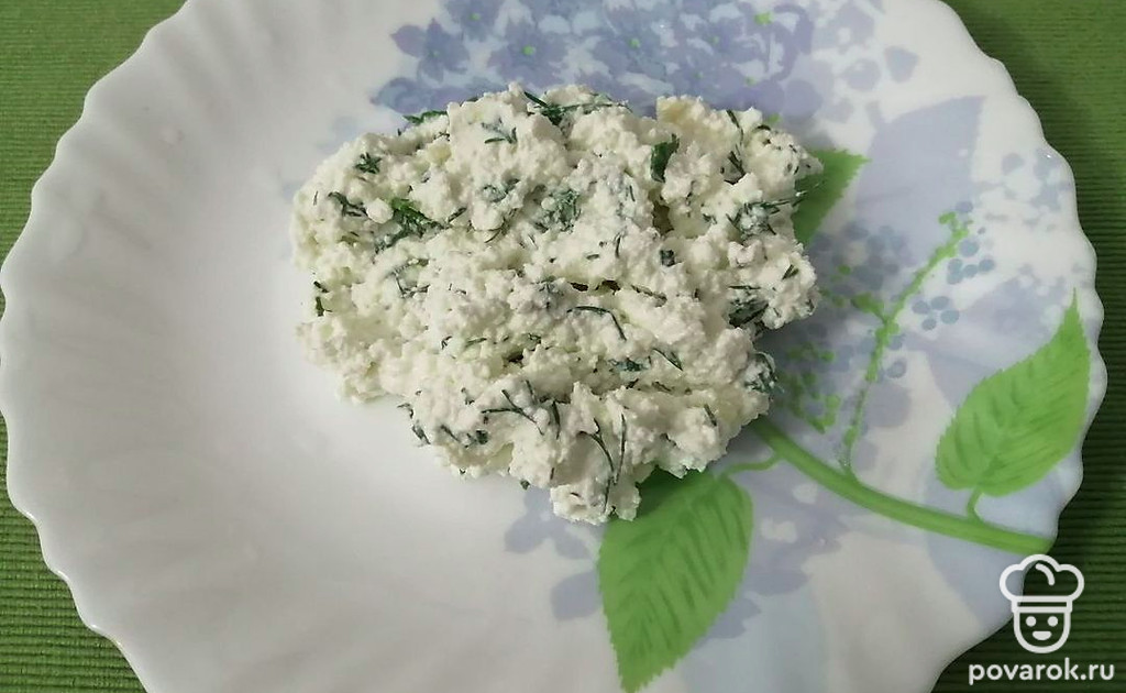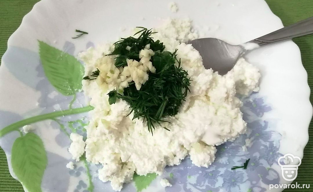 В творог добавляем чеснок и укроп. Хорошо перемешиваем.