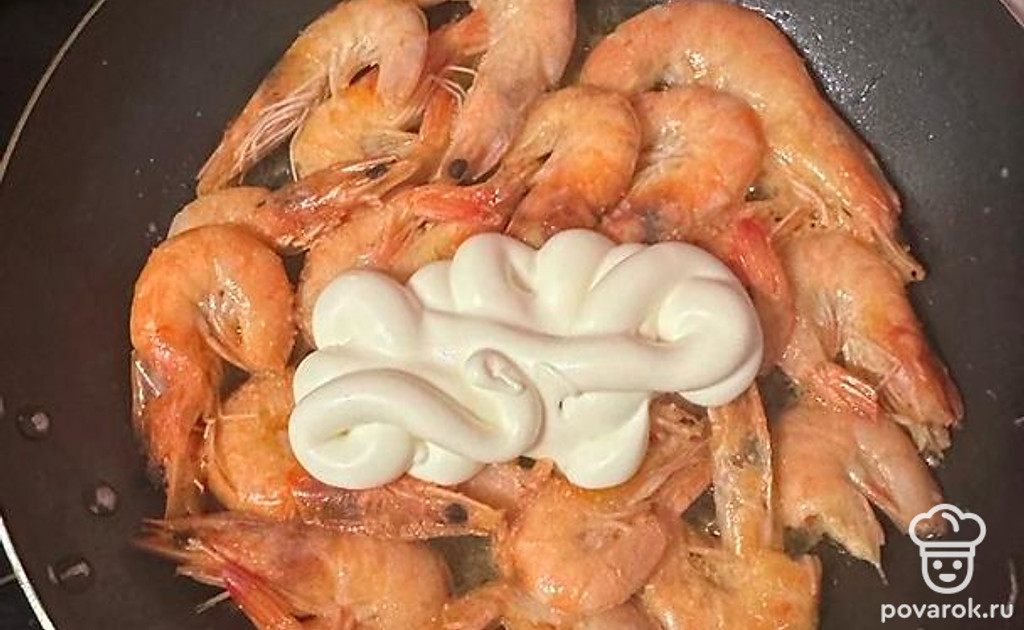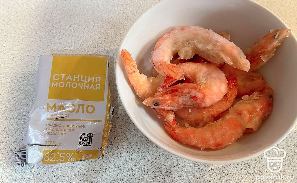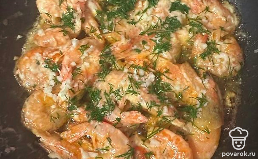 Жареные креветки со сливочным маслом в сковороде