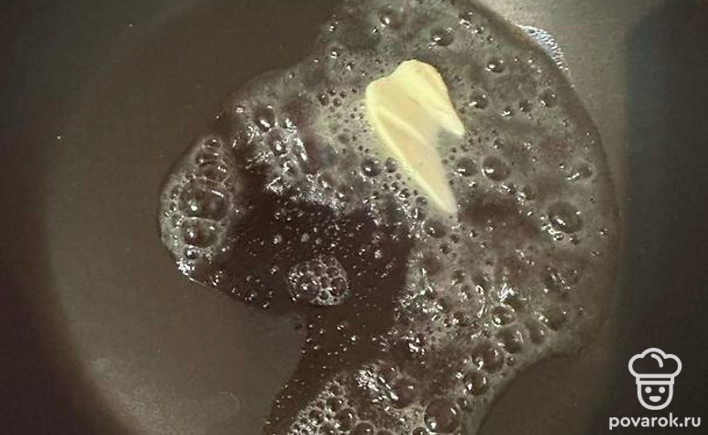Сливочное масло разогреваем на сковороде.