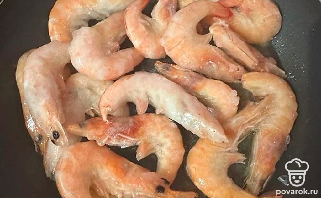 Выкладываем креветки.