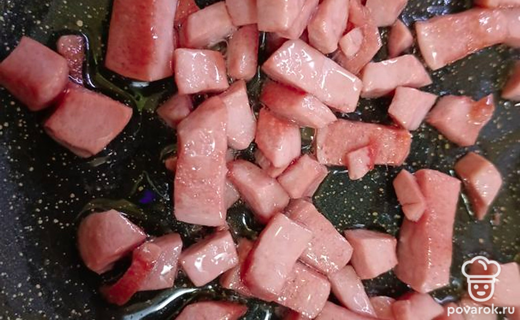 Колбасу обжариваем на сковороде.