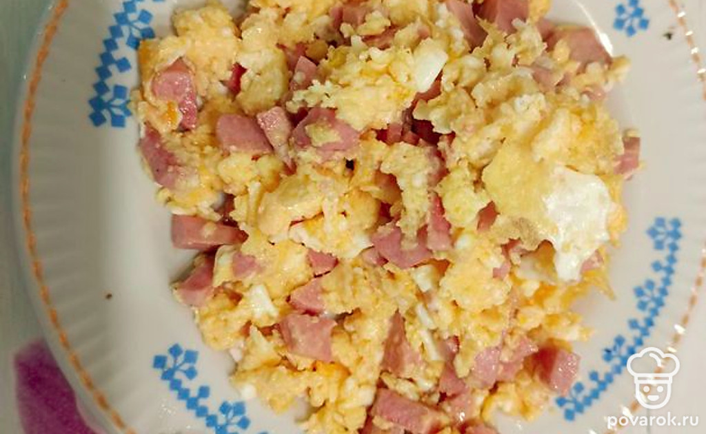 Яйцо с колбасой выкладываем на тарелку.