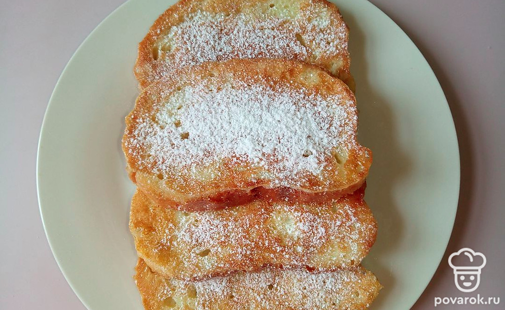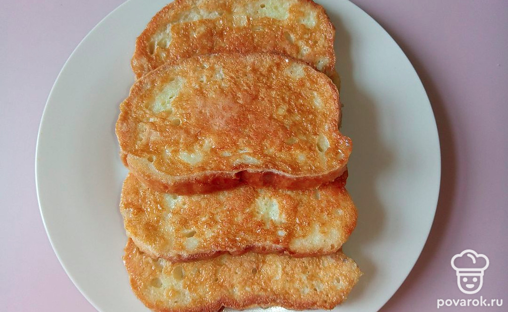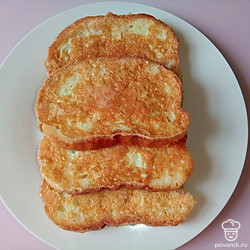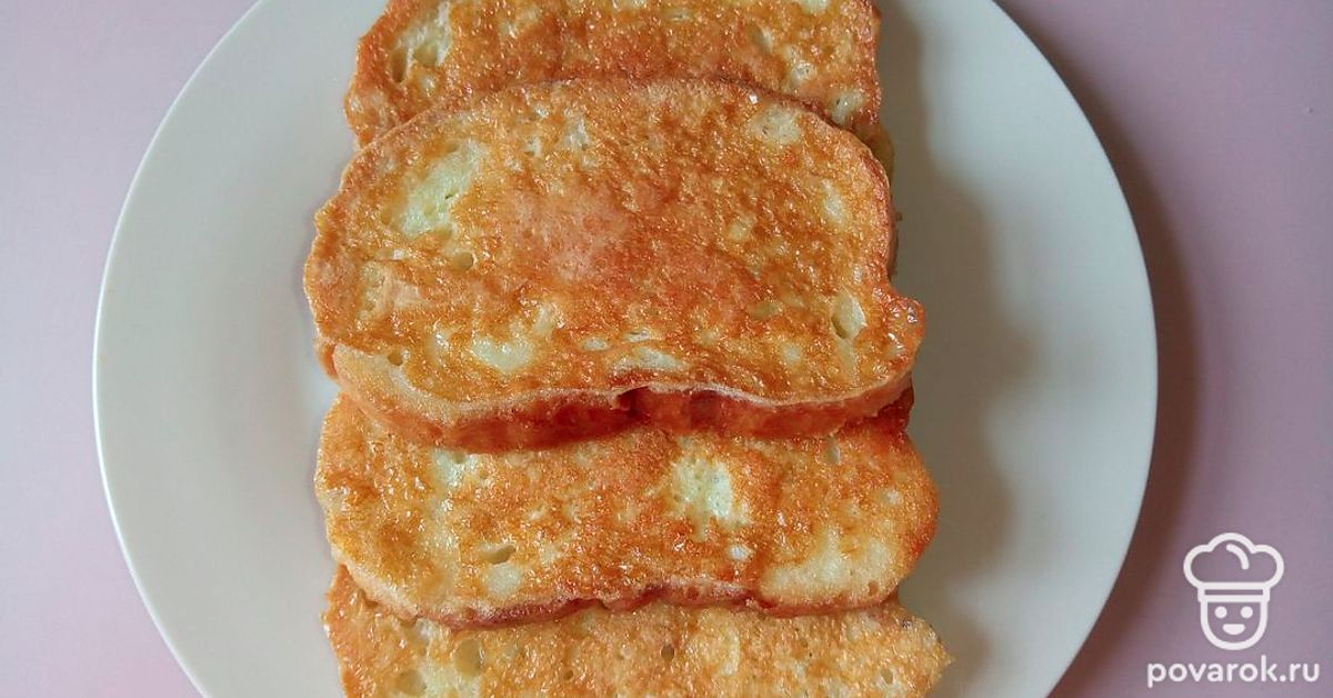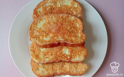 Гренки из белого хлеба в сахарной яичной смеси, обжаренные на растительном масле до румяной корочки.