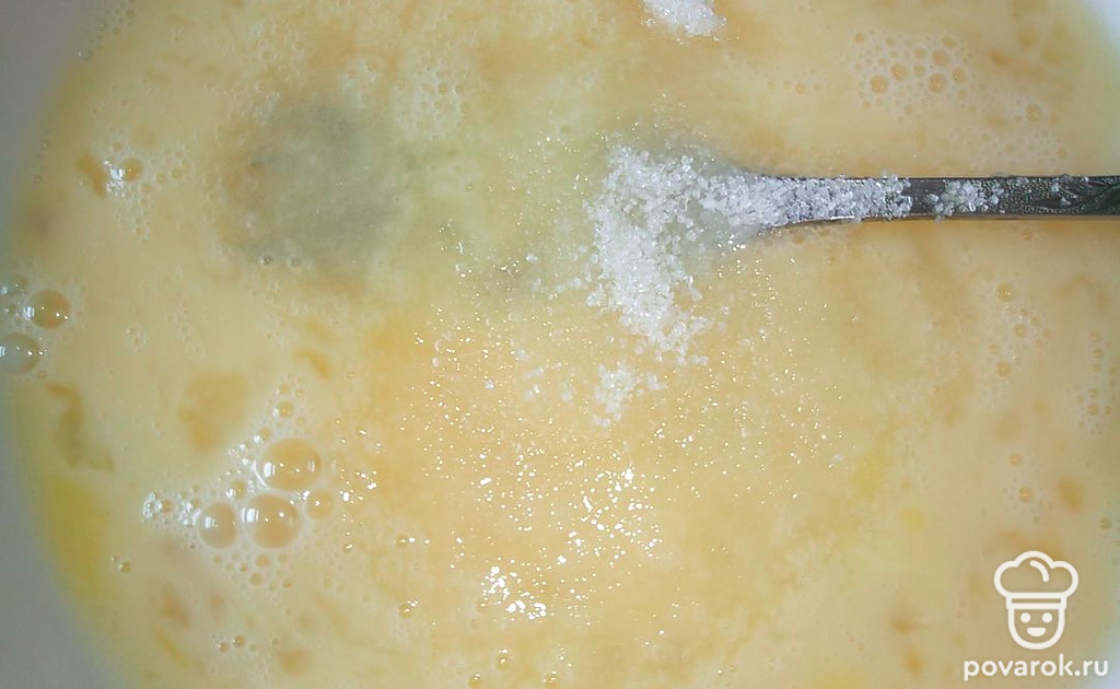 Два куриных яйца взбейте слегка со щепоткой соли.