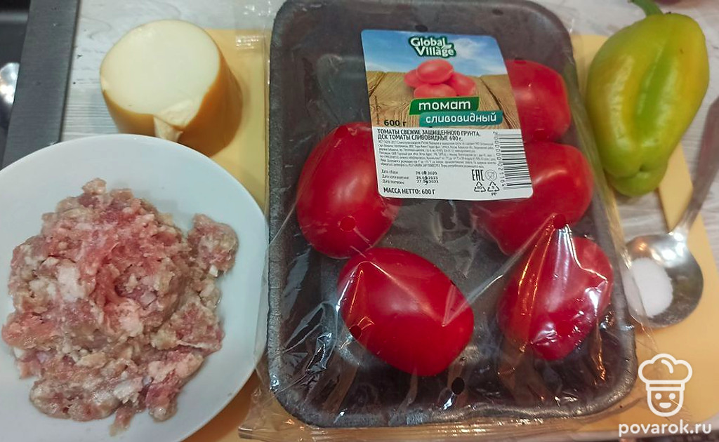 Перец с начинкой из фарша и томатов в духовке