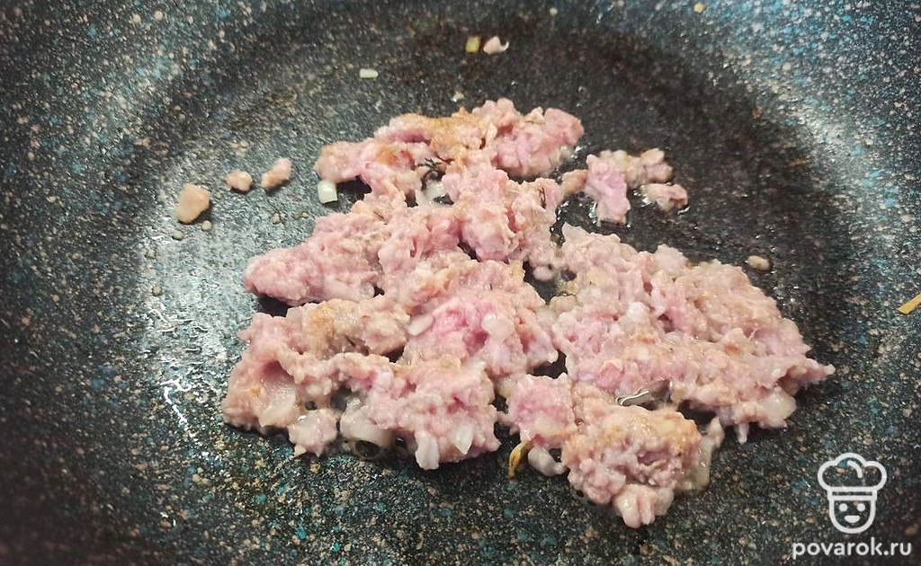 Фарш обжариваем на растительном масле в течение 10 минут.