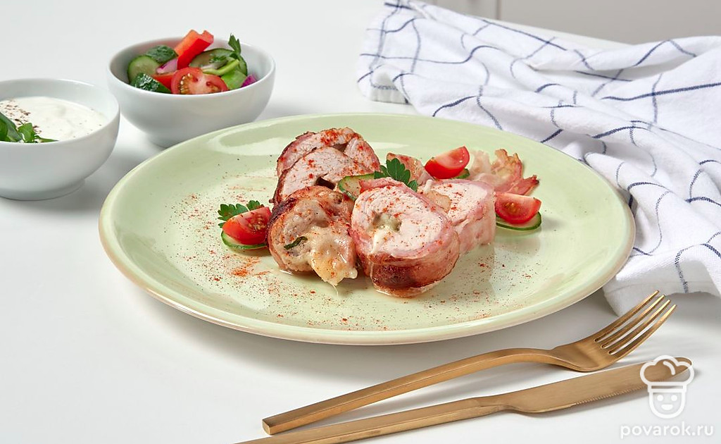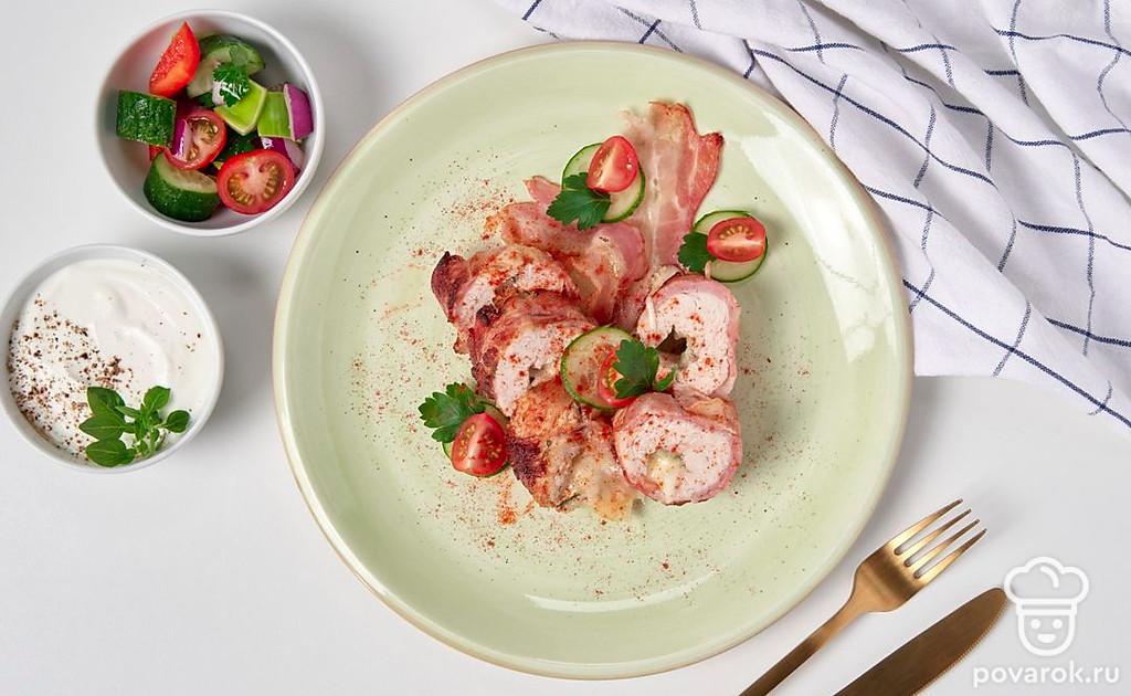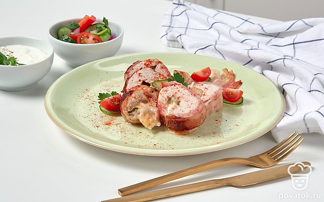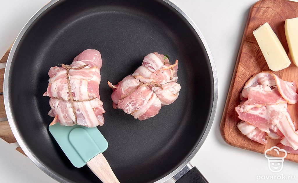 Приготовьте рулетики без бекона, чтобы уменьшить калорийность.