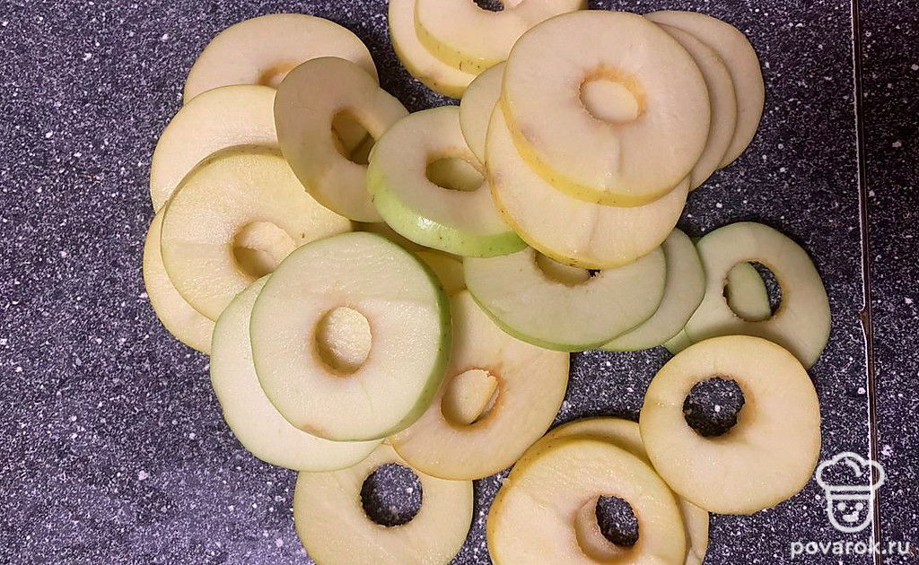 Яблоки помойте, удалите сердцевину. Нарежьте тоненькими ломтиками.
