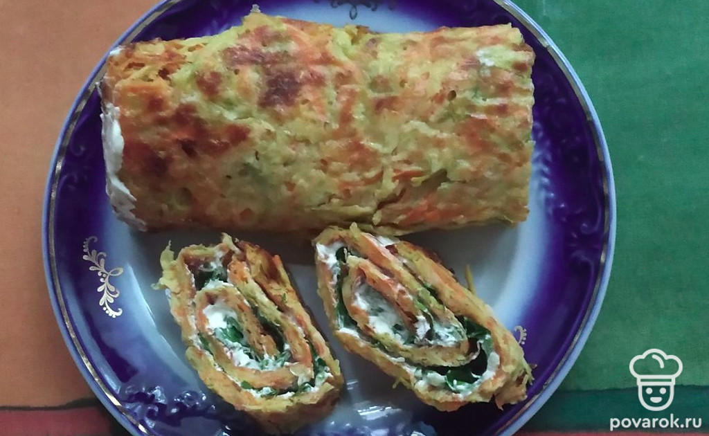Свернуть рулет. Края смазать остатками творожной массы. Приятного аппетита!