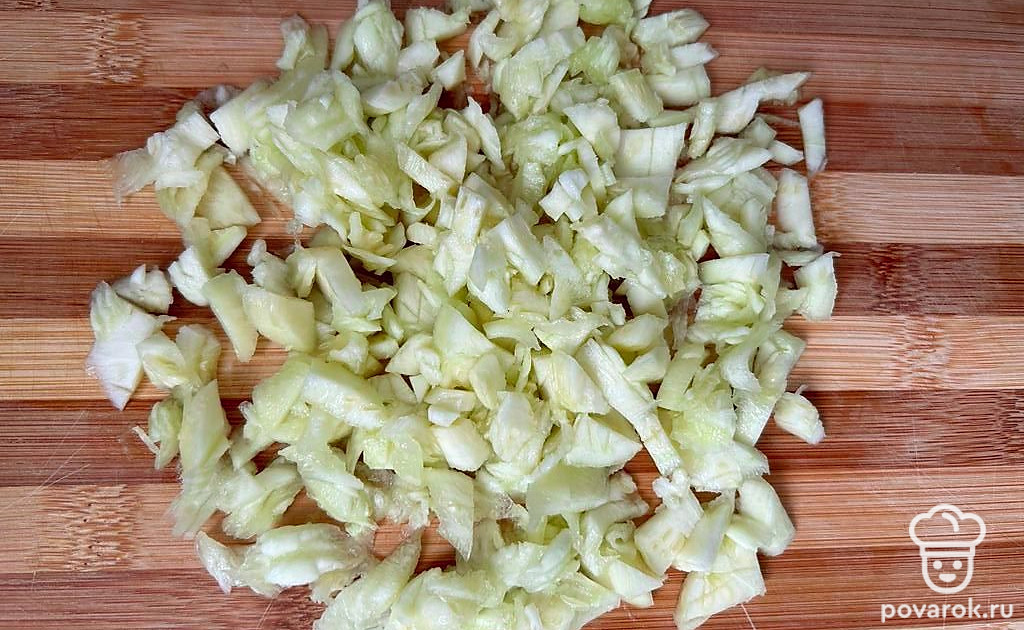 Мелко нарезаем серединку от кабачка.