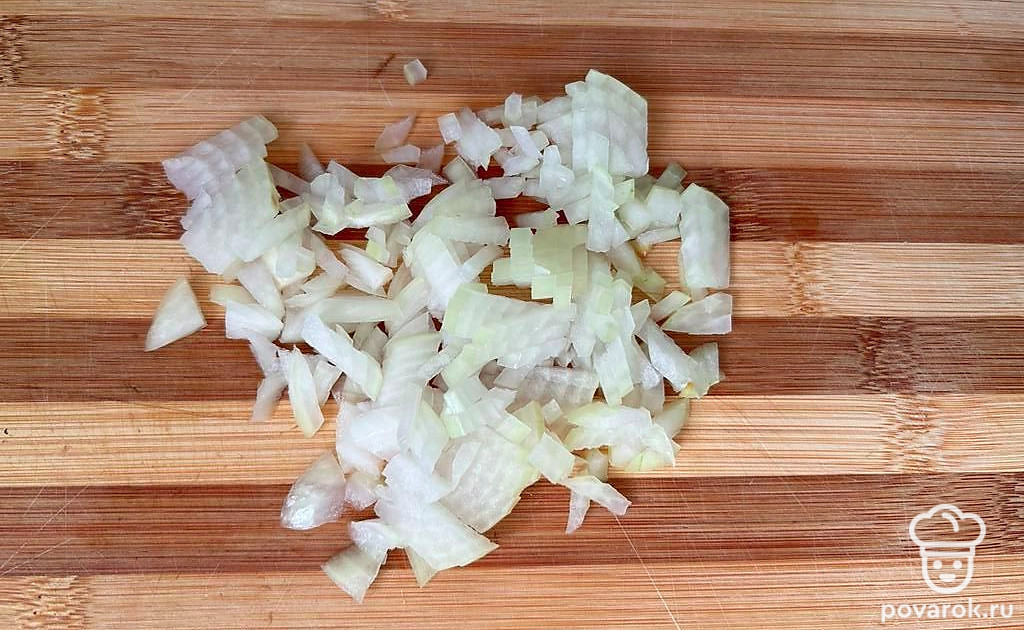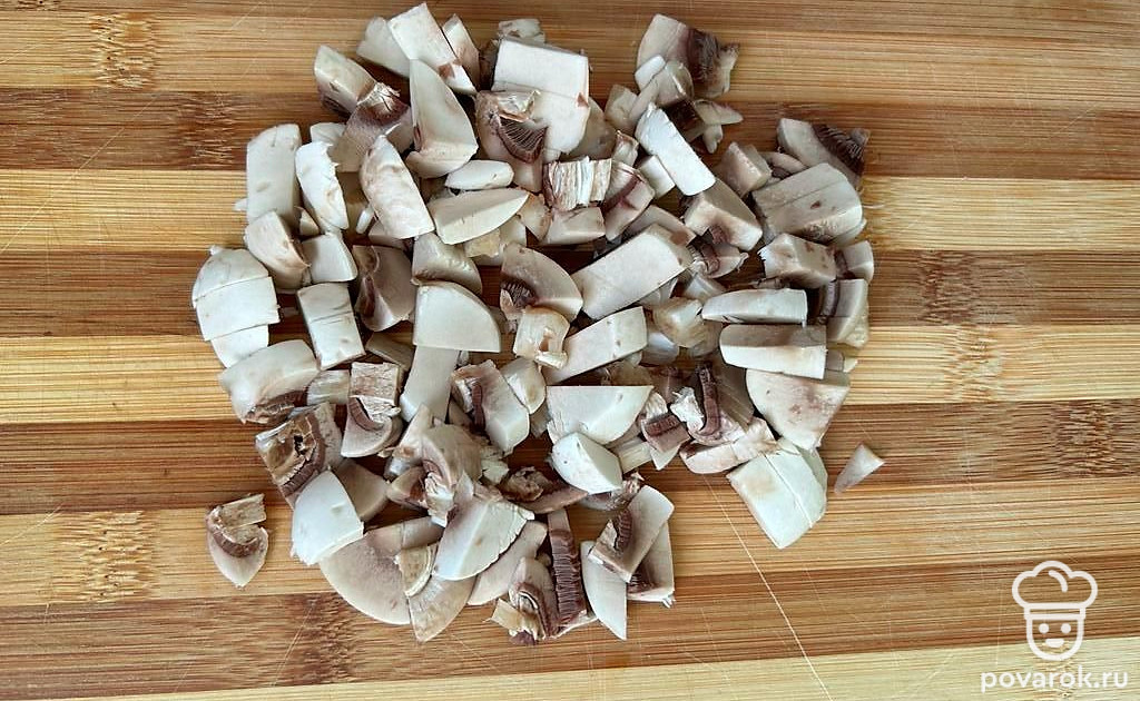 Мелко нарезаем шампиньоны.