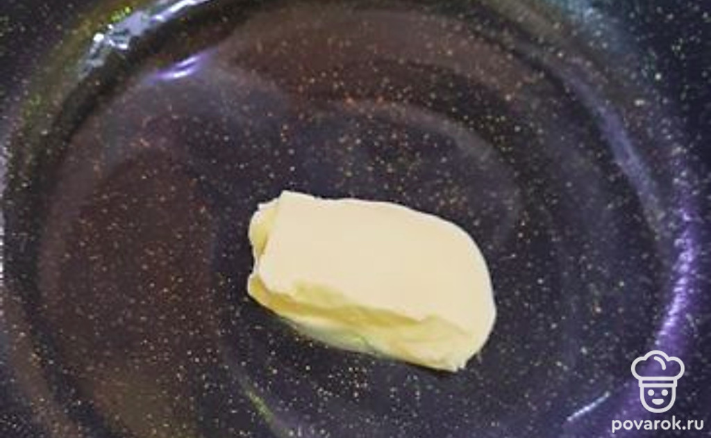 Положить на чугунную сковороду. Обжарить с одной стороны.