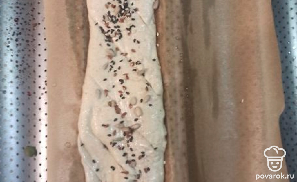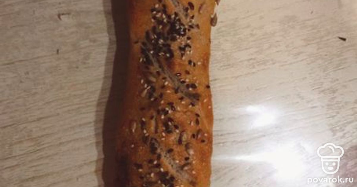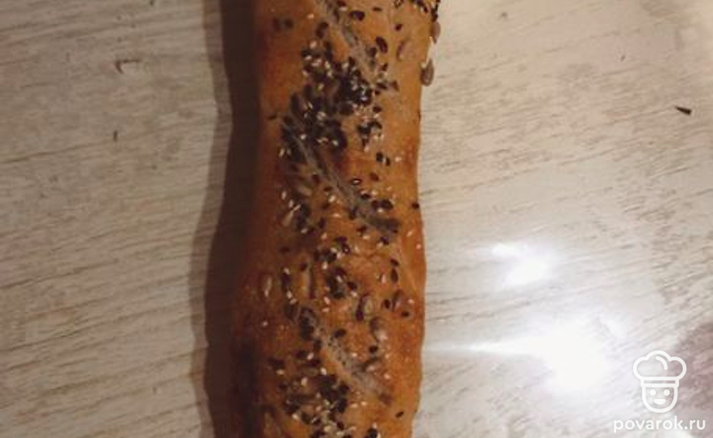 Выпекать при температуре 250 градусов с паром 10 минут. Далее довести до 240 градусов, до готовности.