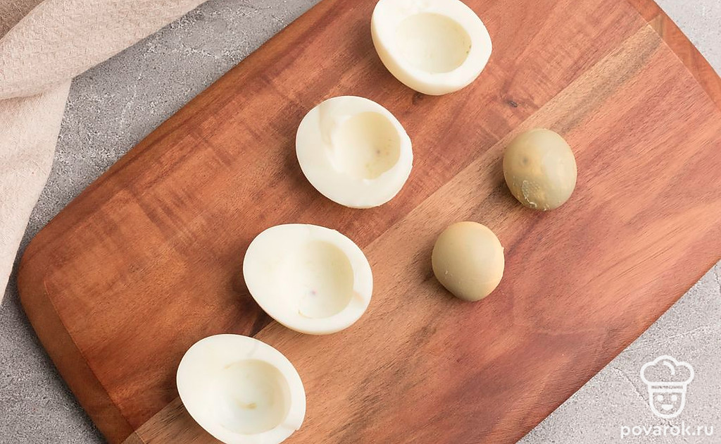 Закуска имеет эффектный внешний вид и приятный вкус, обязательно попробуйте приготовить такое блюдо к вашему праздничному столу.