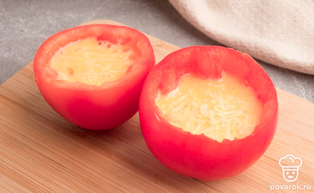 Залейте получившуюся смесь в подготовленные чашечки из помидоров.