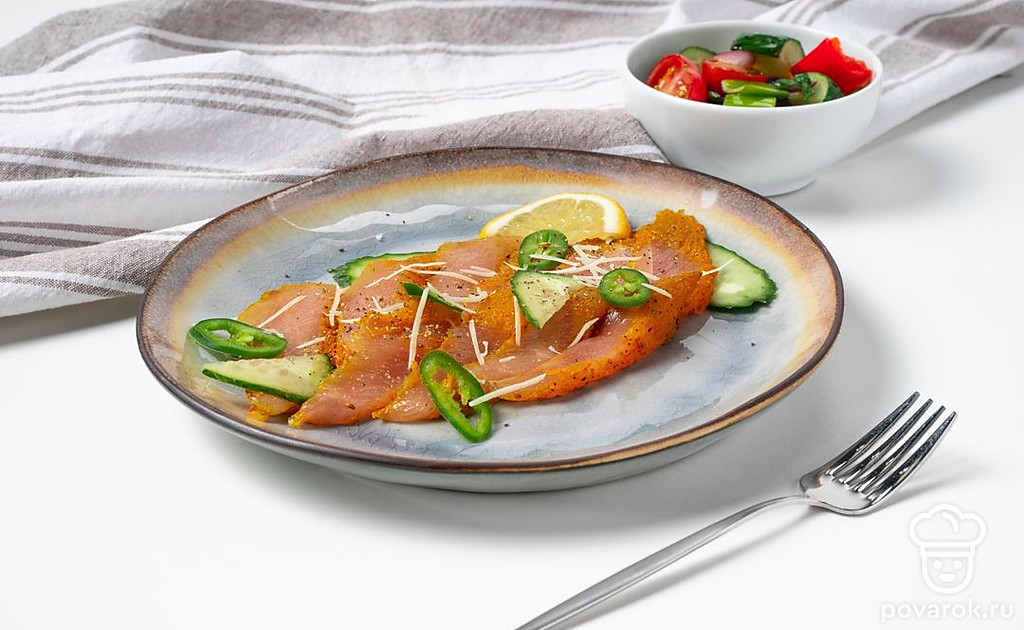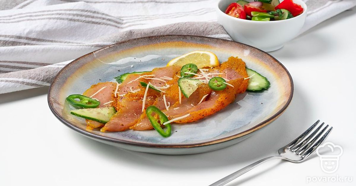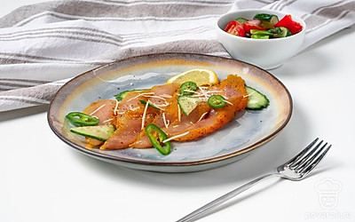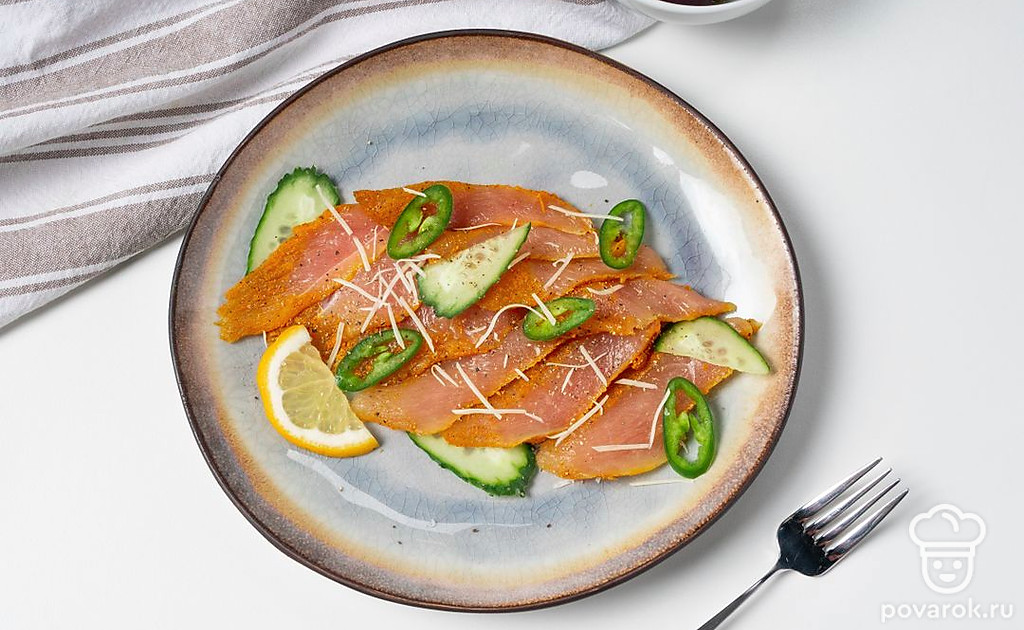 Карпаччо — национальное итальянское блюдо, которое изначально представляло собой тонкие слайсы говяжьей вырезки, но сегодня его также готовят из курицы, индейки. Нарезку приправляют оливковым маслом и лимонным соком. Это блюдо получило широкое распространение и приобрело популярность во всем мире. Закуска названа в честь художника Витторе Карпаччо. Графиня Амалия Нани Мочениго, для которой приготовили это блюдо, увидела в нем сходство с картинами этого художника.