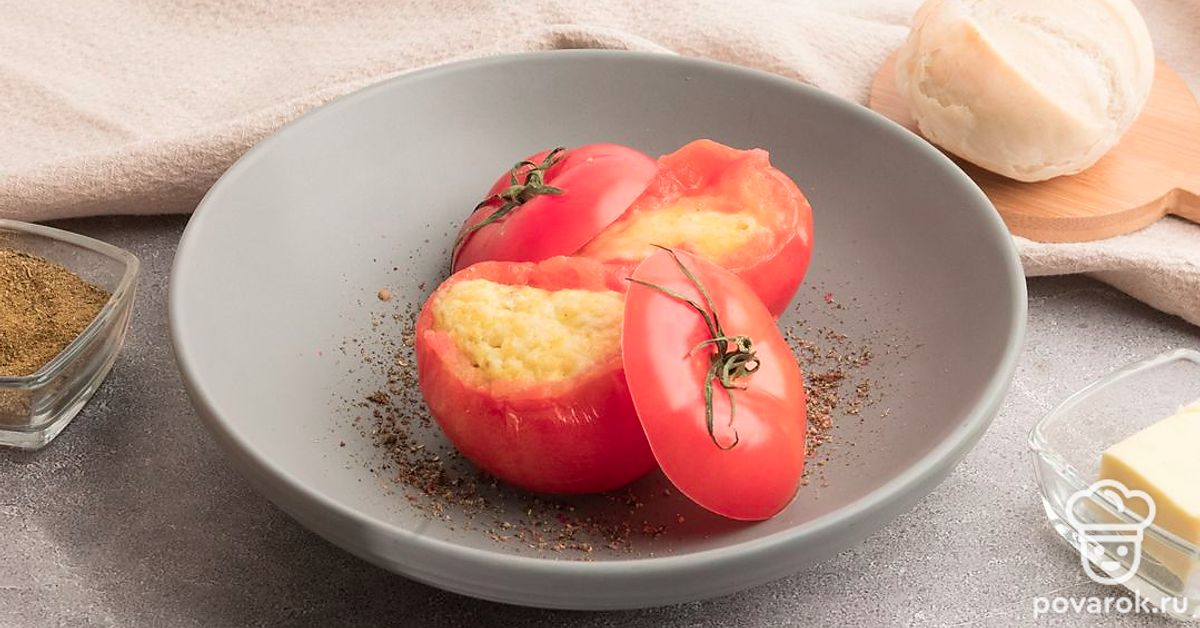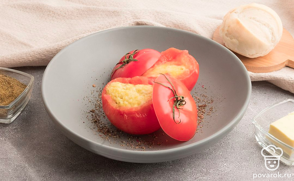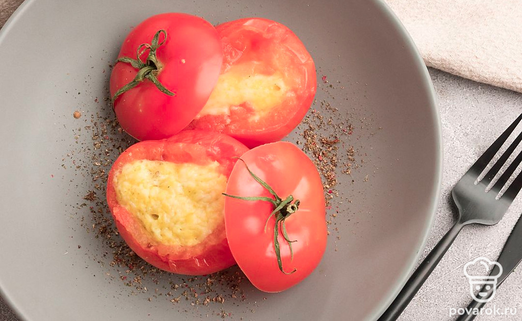 Фаршированные помидоры яйцом и сыром в микроволновке