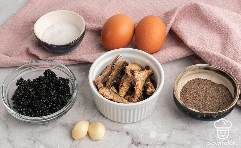 Заранее отварите яйца и очистите зубчики чеснока. Чтобы вам было удобнее готовить, разложите все ингредиенты перед собой на столе.