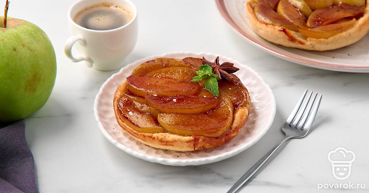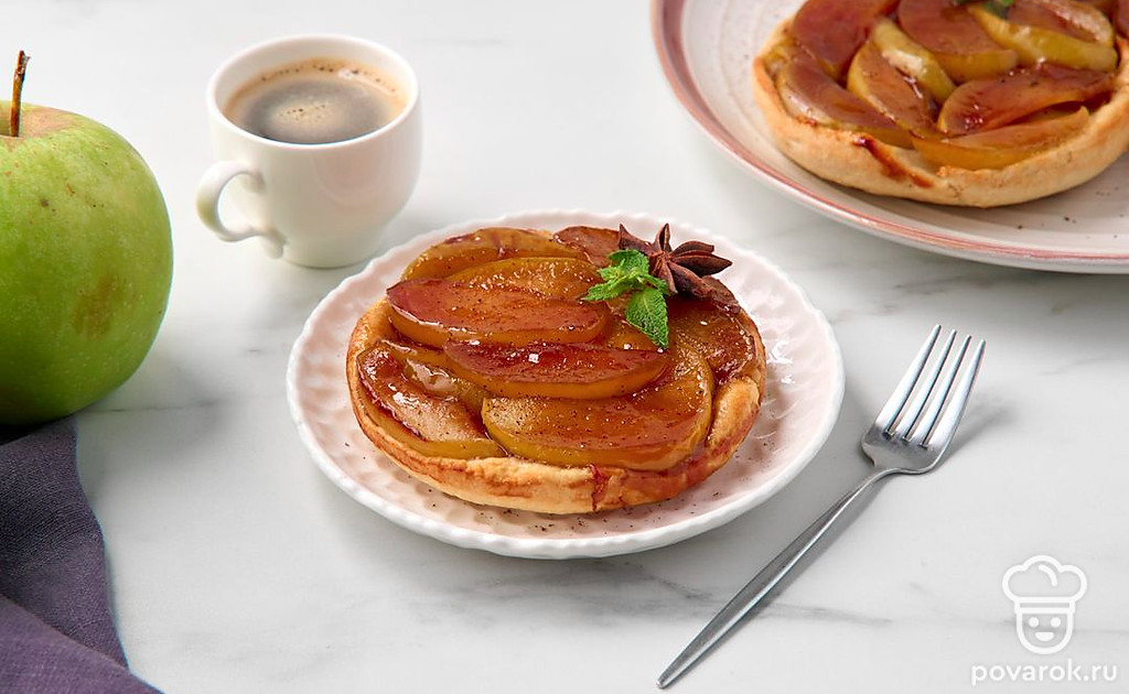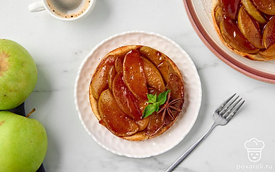 Эти маленькие пироги-перевертыши выглядят очень аппетитно благодаря тому, что яблоки предварительно карамелизуются на сковороде. Так яблочные дольки приобретают бронзовую корочку. Потом в духовке под слоем теста они пропекаются и становятся мягкими. Прежде чем перевернуть пирог на тарелку, дайте ему немного остыть. Потом накройте формочку плоской тарелкой и быстро, но аккуратно переверните ее. Яблоки вместе с сиропом окажутся на подушке из песочного теста, так и получаются французские пироги.
