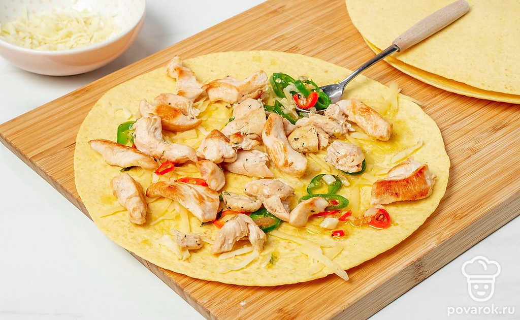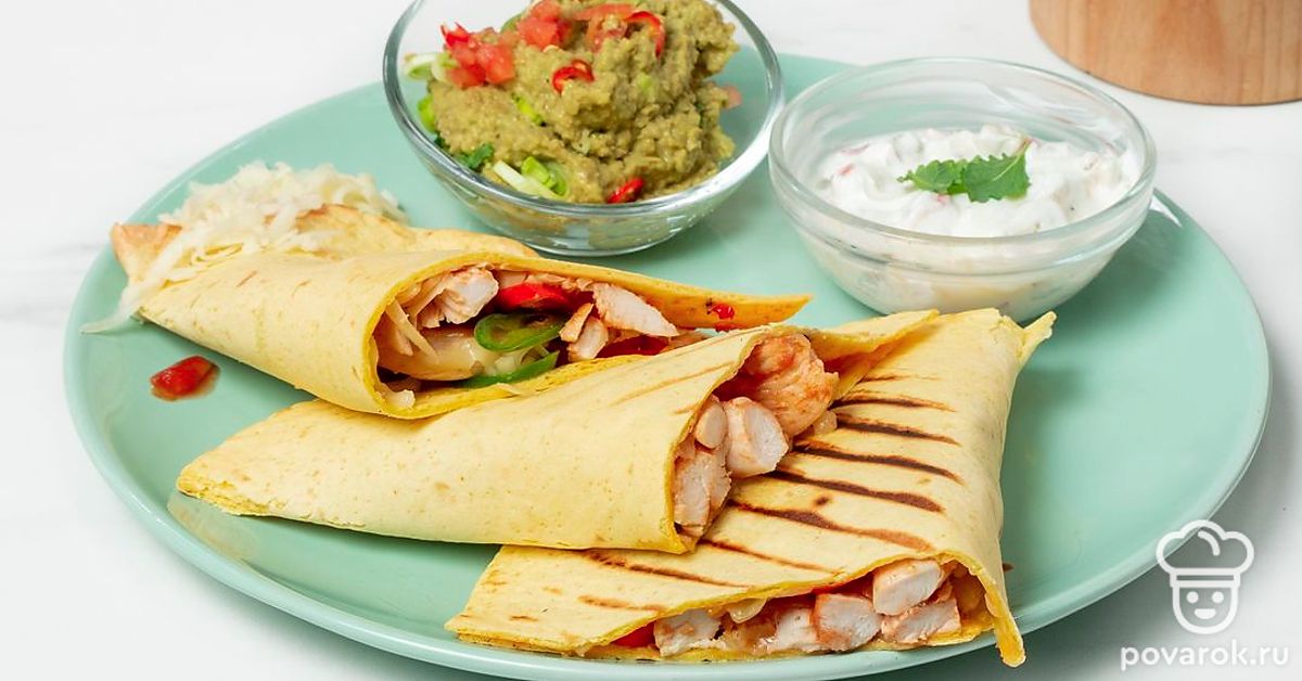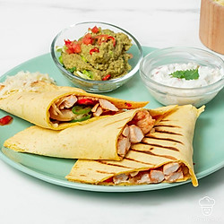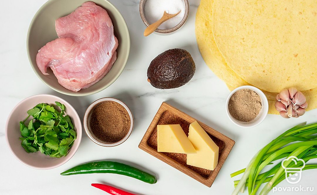 Кесадилья — традиционная мексиканская закуска. У нее пикантный и необычный вкус. Сочетается закуска с различными острыми соусами, например, с домашним гуакамоле. В классическом рецепте пшеничная лепешка наполняется сыром. Сейчас существует огромное разнообразие вариантов приготовления этой закуски. Предлагаем рецепт кесадильи с начинкой из сыра и индейки.