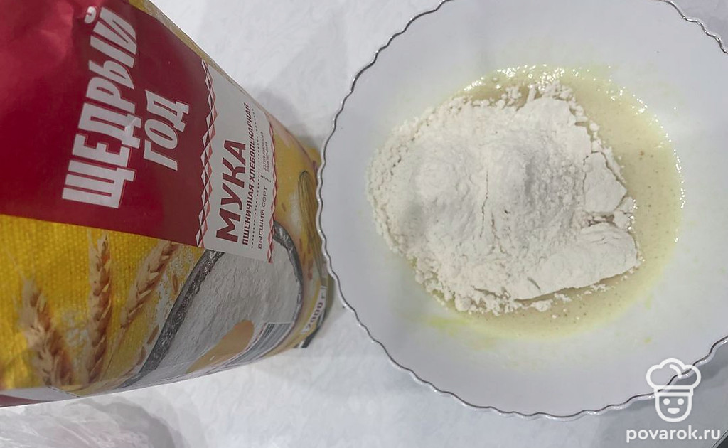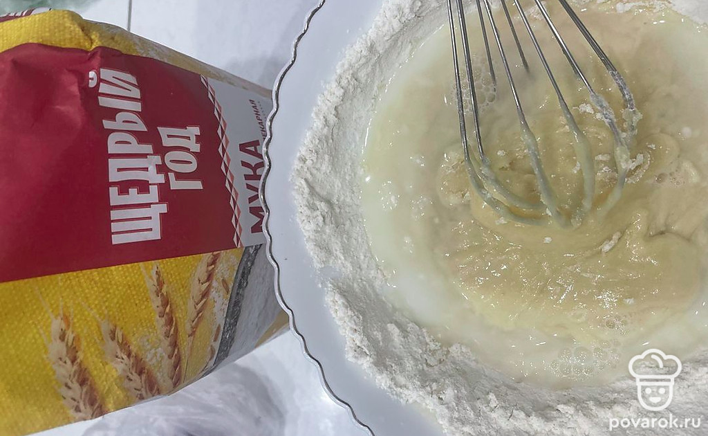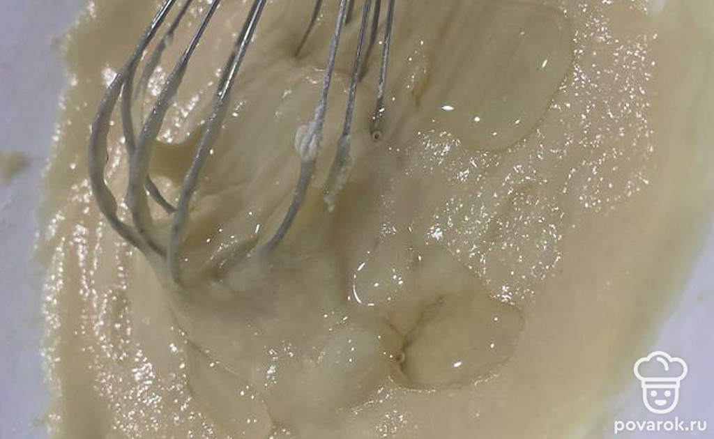 Яйцо разотрите с сахаром в однородную массу при помощи венчика.