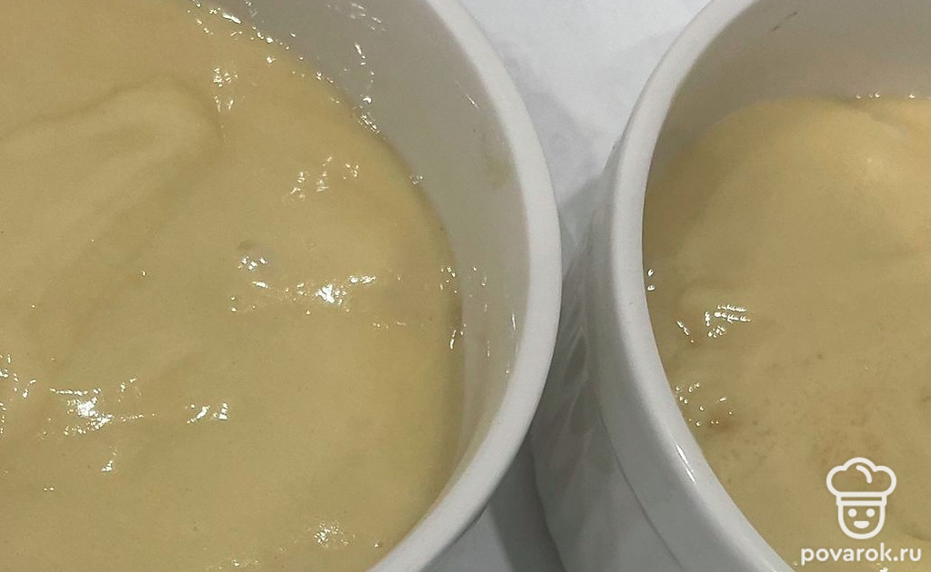 Залейте формы тестом до половины. Выпекайте булочки в духовке 20 минут при температуре 200 градусов.