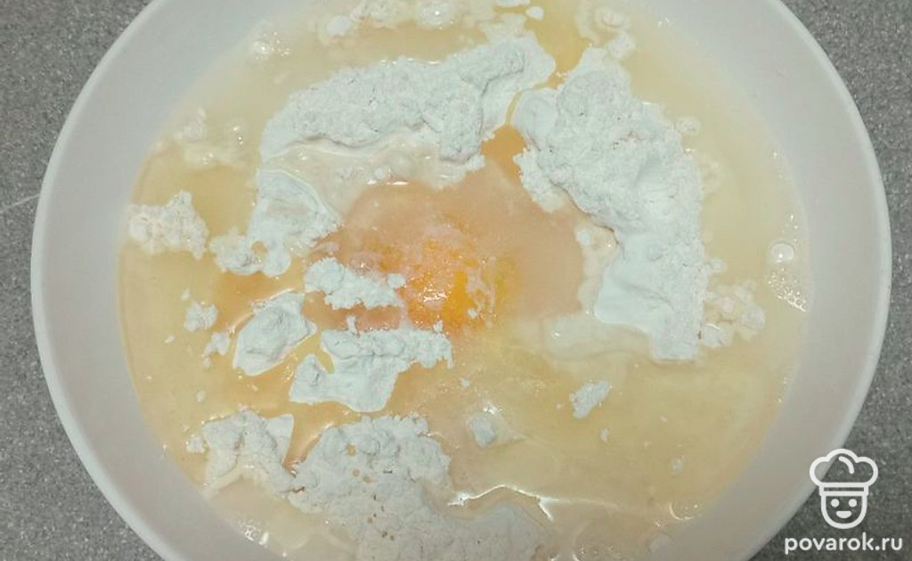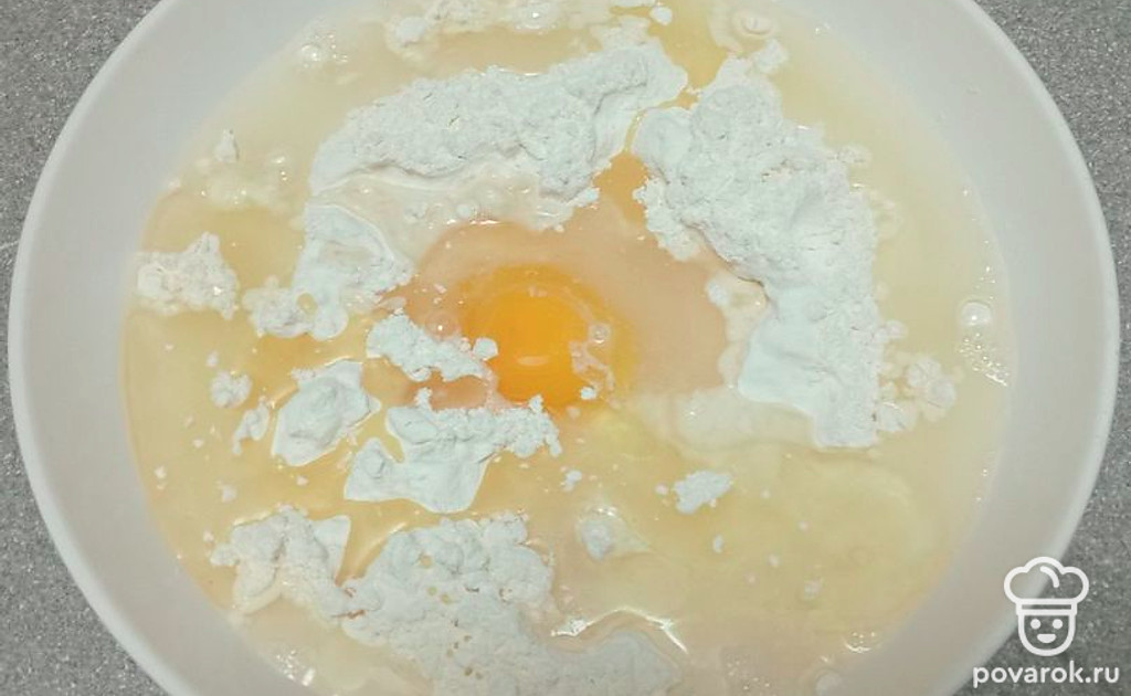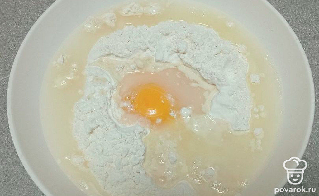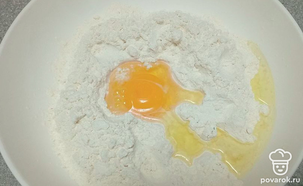 В муку вылейте яйцо.