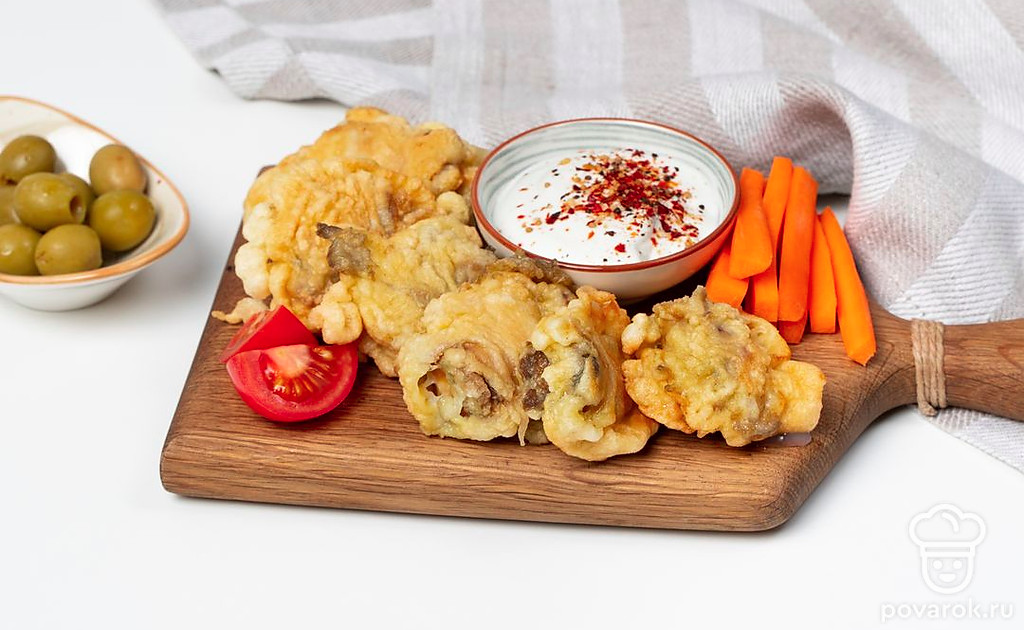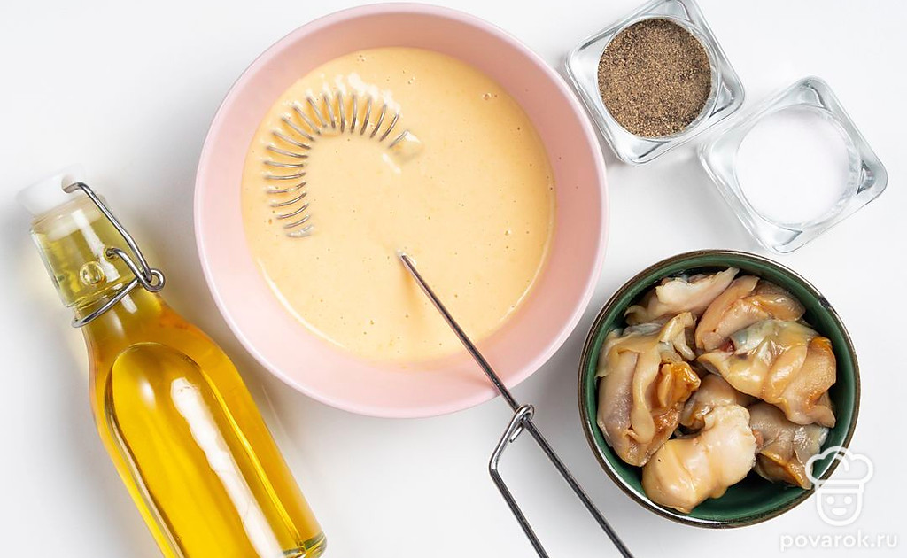 Морепродукты в кляре отличаются специфическим вкусом и ароматом, поэтому готовят их не часто, а зря. Такая интересная закуска прекрасно заменяет мясные блюда, питает организм ценными витаминами и способствует укреплению здоровья. В этом рецепте предлагается приготовить хрустящего трубача. Готовый моллюск получается очень нежным и сытным. В качестве кляра используется тесто из муки и яиц, но вы можете запанировать его обычными сухарями — получится не менее вкусно.