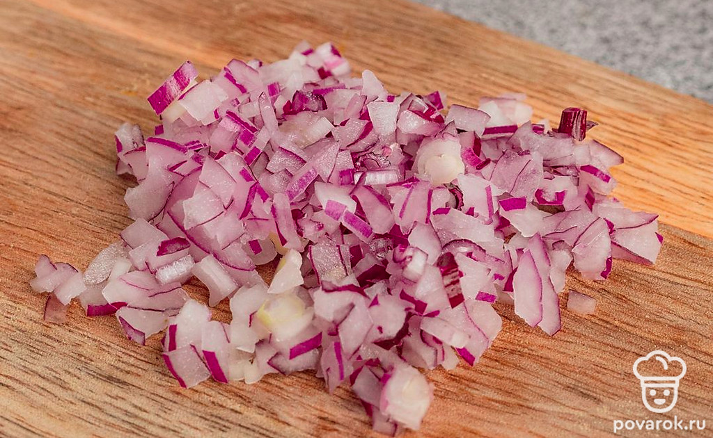 Выложите все ингредиенты на стол для удобства приготовления. Репчатый лук очистите.