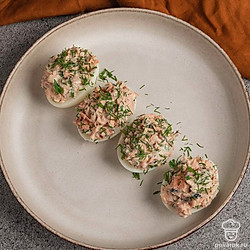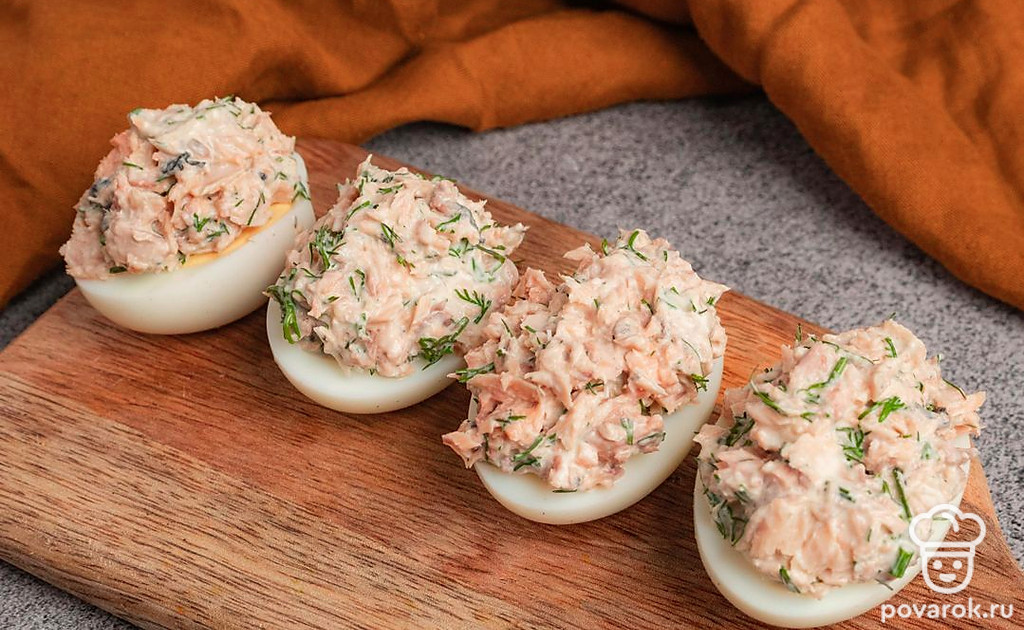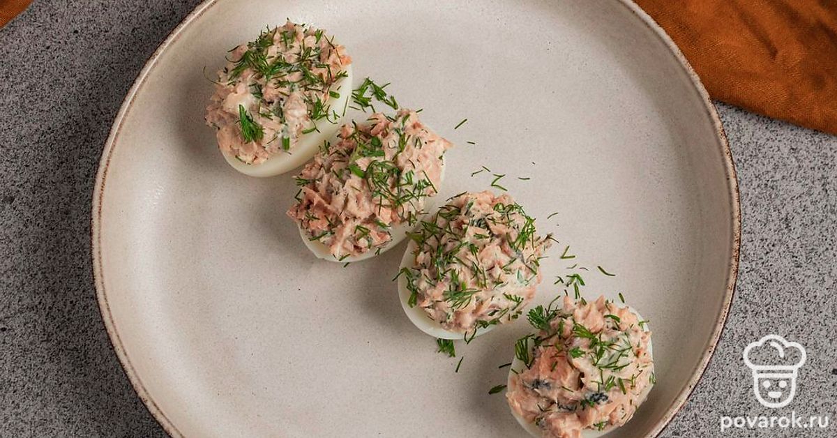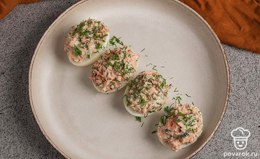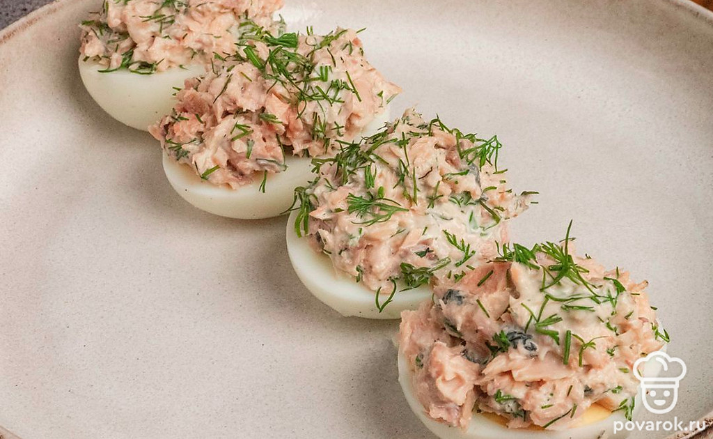 Яйца, фаршированные горбушей и укропом станут быстрой, простой и, главное, вкусной закуской для вашего застолья. Они отлично дополнят праздничное меню из горячих блюд и салатов. Для приготовления таких фаршированных яиц не потребуется особых кулинарных способностей, поэтому с ними могут справиться не только взрослые, но и дети. Несмотря на свою простоту, блюдо эффектно смотрится на столе и точно понравится вашим гостям. Особенно тем, кто любит рыбу.