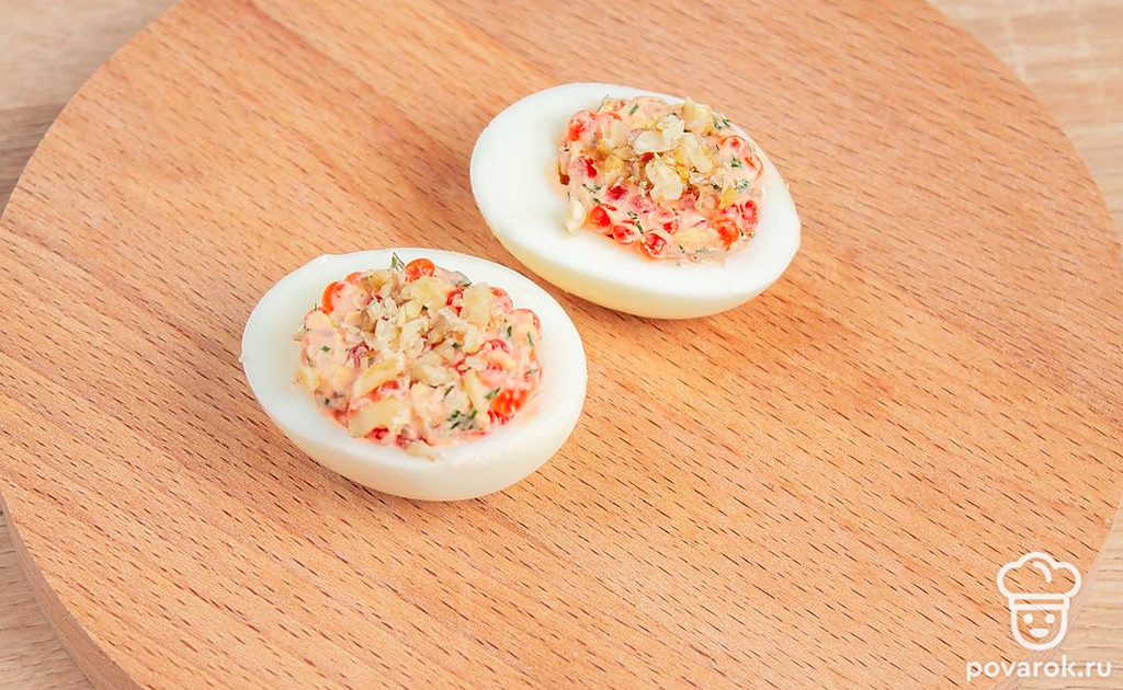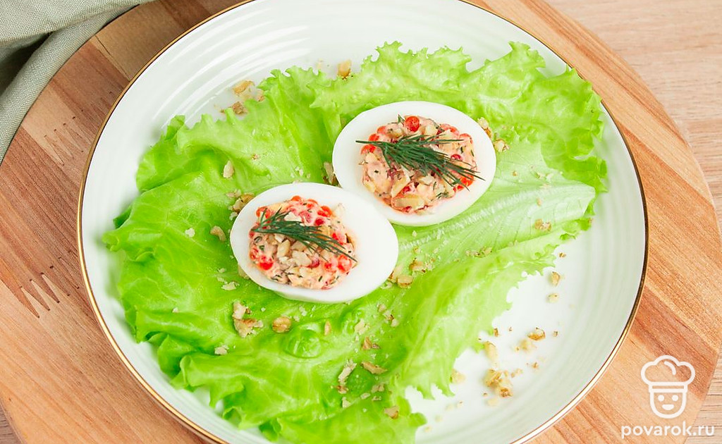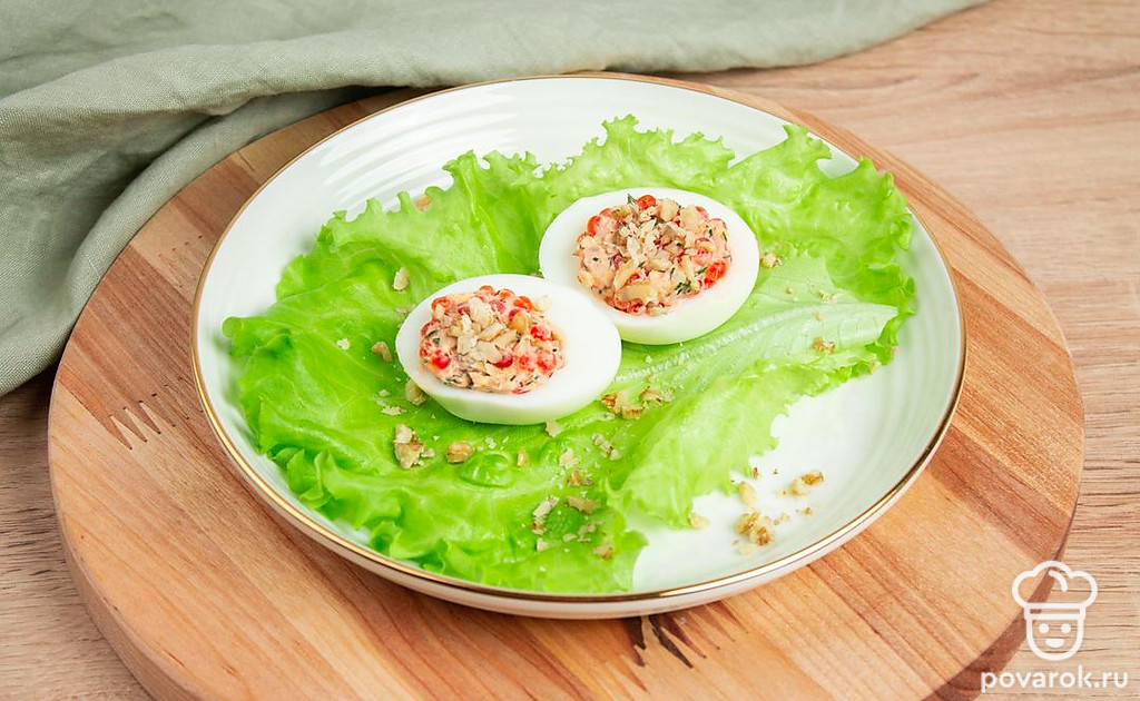 Существует множеств рецептов фаршированных яиц. Это простое и эффектное блюдо подавали еще на столах царских особ! И в наше время яйца с начинкой в виде икры и грецких орехов по праву заслуживает место на праздничном застолье. Простое в приготовлении, интересное по вкусу и по-настоящему царское с виду угощение никого не оставит равнодушным, так что его вполне можно повторить и в будние дни, чтобы добавить им цвета и вкуса.