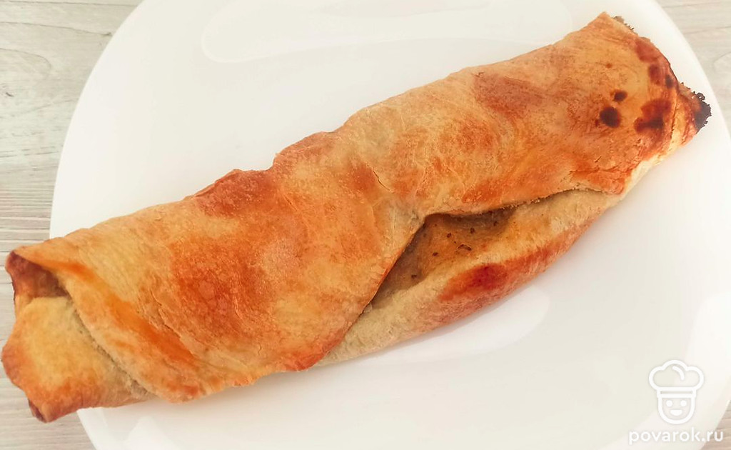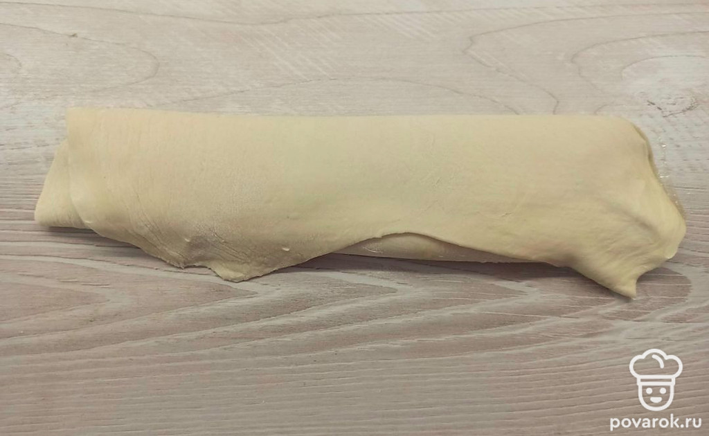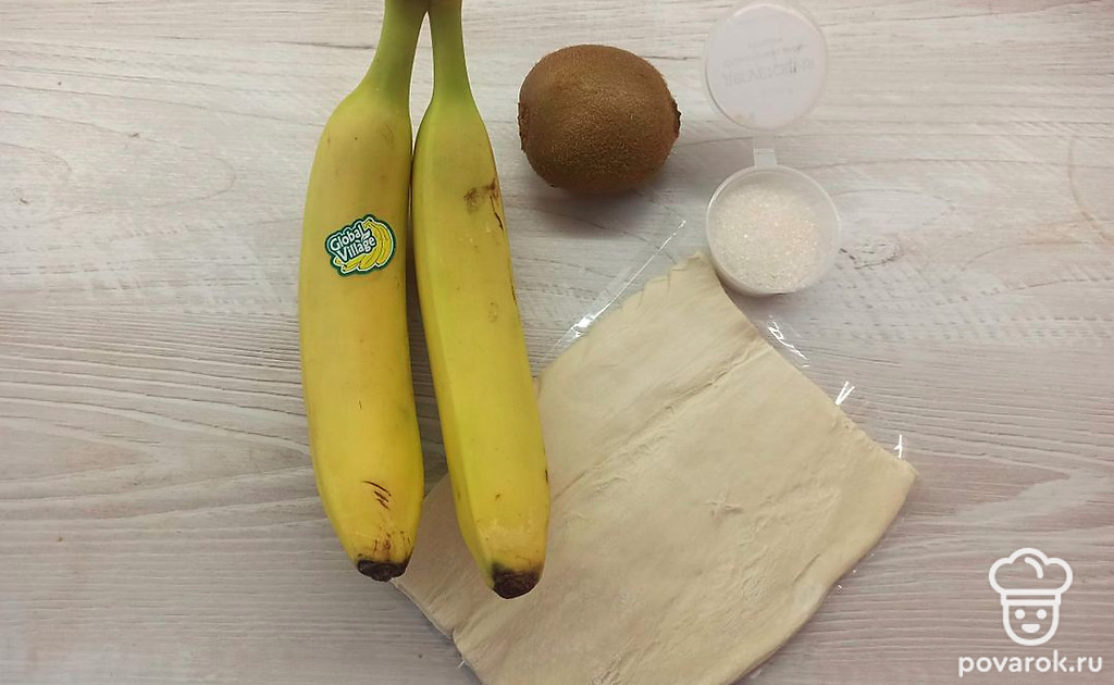 Вкусный и нежный рулет из бездрожжевого слоеного теста с начинкой из бананов и киви.