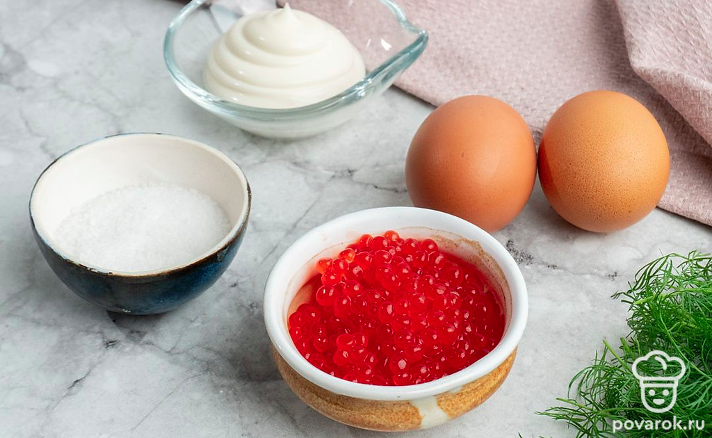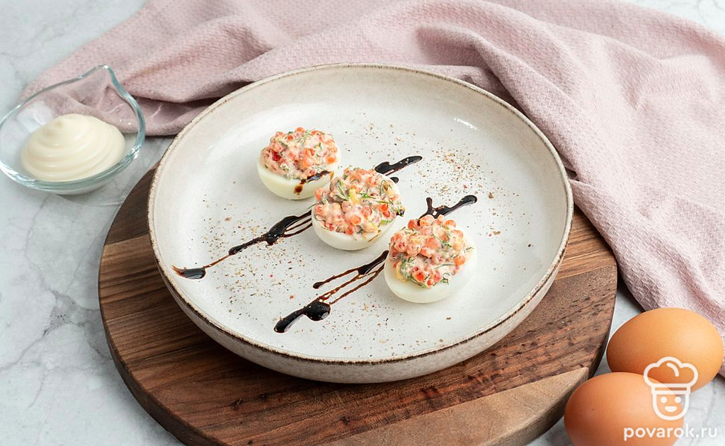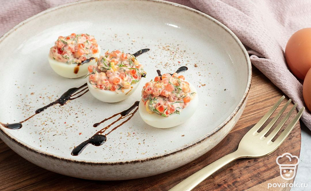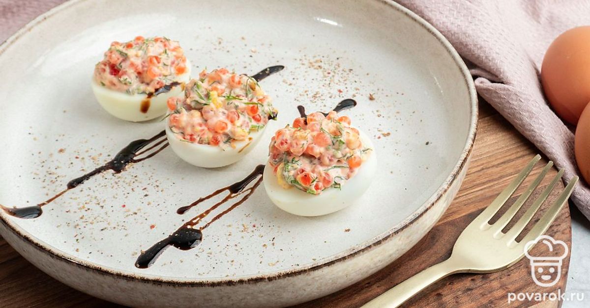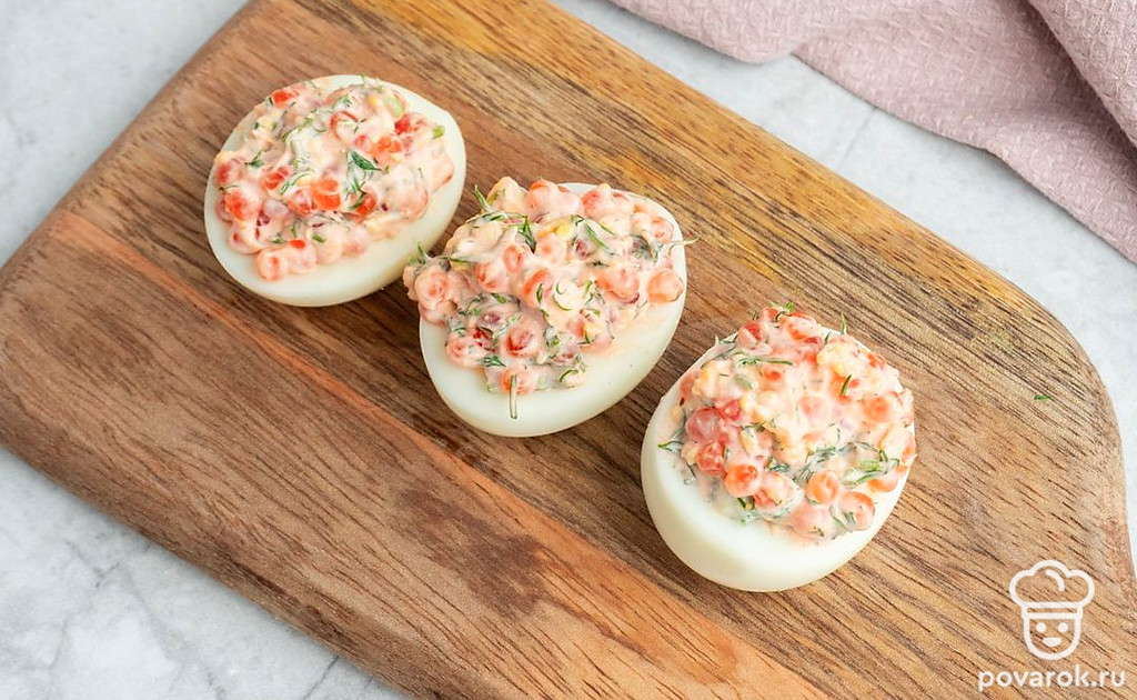 Фаршированные яйца с укропом и красной икрой