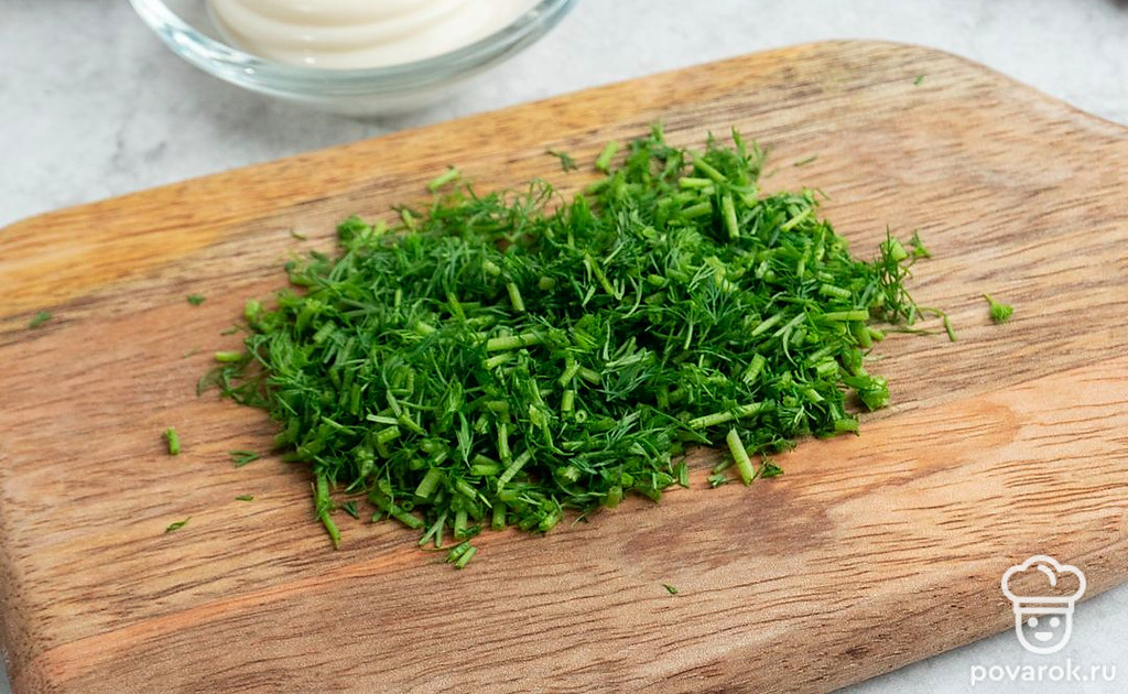 Мелко нарежьте свежий укроп.