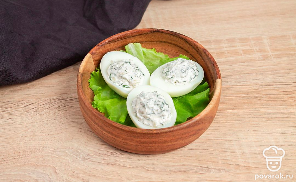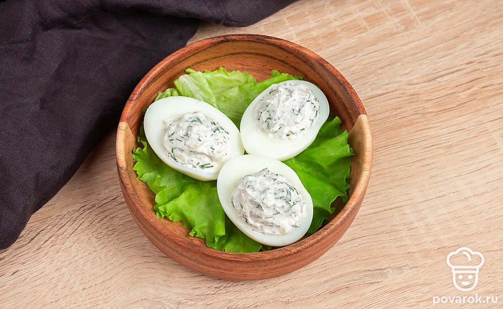 Яйца фаршированные творожным сыром и укропом ⎯ прекрасная холодная закуска, которая удачно дополнит любой праздничный стол.